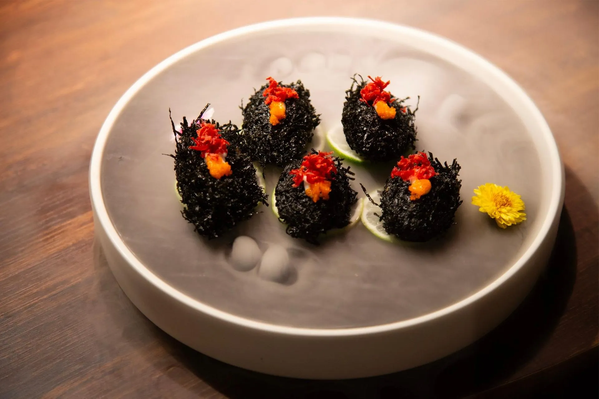 我們一進包廂,就被這裡溫馨的佈置和舒適的環境所吸引。首先,我們點了「酒沏苔味九孔鮑」。這道菜的九孔鮑滷煮後裹上海苔酥炸,口感鮮嫩彈牙,搭配甜薑和蝦卵,味道非常特別。姐妹們對這道菜充滿了好奇,大家都讚不絕口。