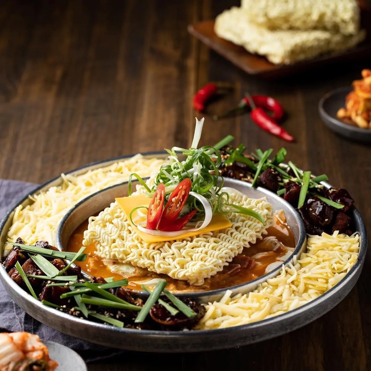 今天的目標是娘子韓食的起司豬肉部隊鍋,這道菜的名字光聽就讓人感覺非常豐富。部隊鍋源自於戰後的美韓混合料理,而這裡還特地加了起司,讓我非常期待。