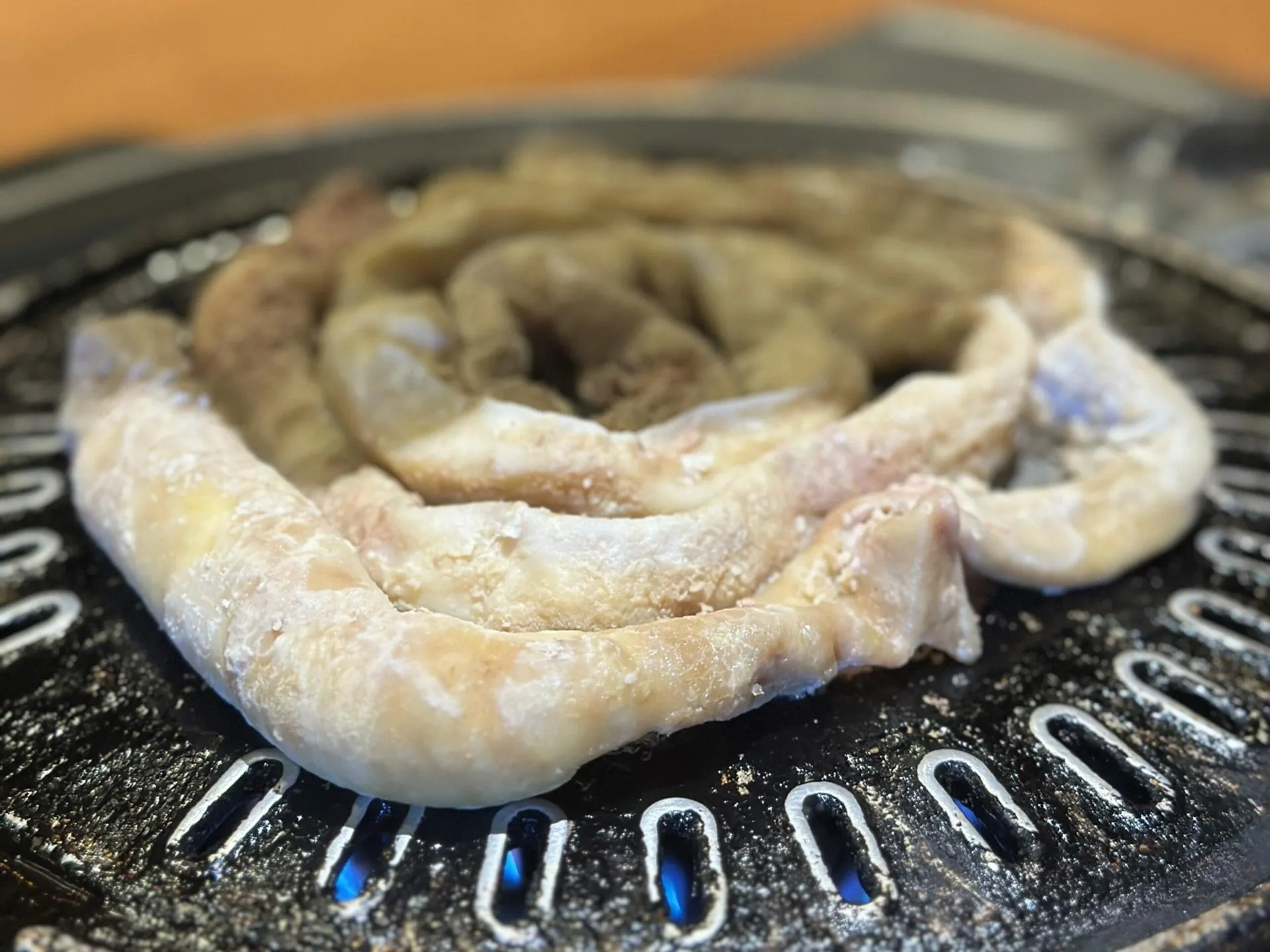 當烤腸端上桌時,服務生在我們面前開始烤製,香氣撲鼻而來。這種桌邊服務讓我們體驗到了正宗韓國的吃法,非常特別。搭配生菜、芝麻葉和特製的韓式沾醬,每一口都充滿了驚喜和美妙的味道。
