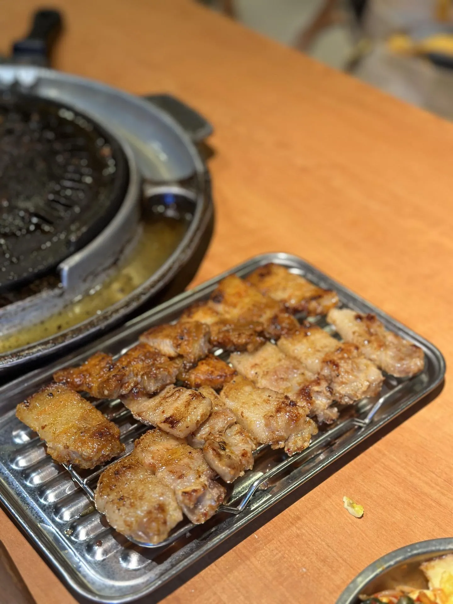 首先,我點了店內最受歡迎的八色烤肉套餐。這份套餐包括八種不同風味的豬五花,每一片都經過精心醃製,每一口都充滿了驚喜和美味。