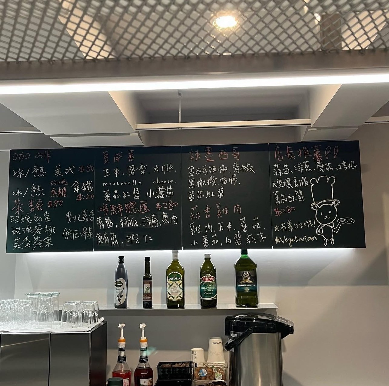 走進C Pickza,迎面而來的是店內的大黑板,上面寫了醬料與配料的建議,看得人超興奮。這裡的玩法很簡單,選醬料、選配料,再等兩分鐘,熱騰騰的披薩就能上桌。感覺披薩這東西一下子變成了樂高積木,隨你搭配,怎麼弄都不會失敗!