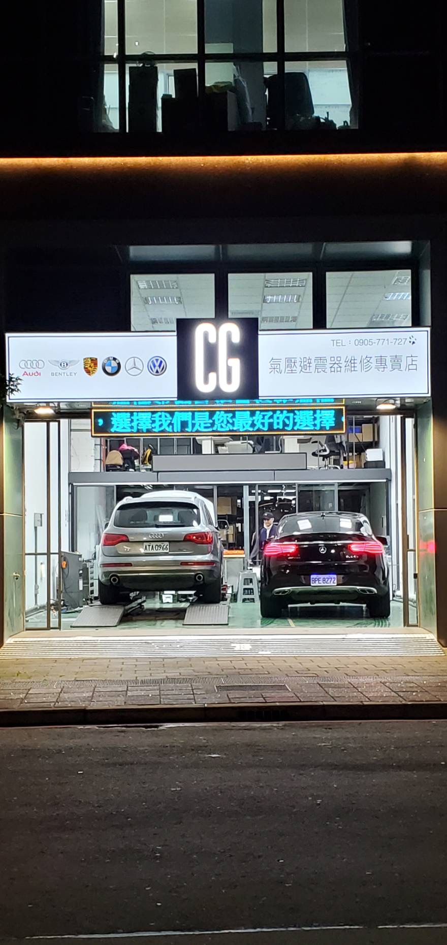 CG 的師傅超有耐心,先用檢修電腦幫我整台車做一次完整檢測,把所有故障紀錄都讀出來,再重點檢查氣壓避震器的狀況。接著才慢慢解釋各種價格差的原因,