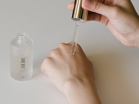 洗完臉後,接下來是荻花金箔精華液的時間。這瓶精華液的質地輕盈,裡面漂浮著閃閃的金箔,看起來像個小寶物。每次輕輕拍在臉上,那種被精華覆蓋的清涼感,讓人覺得肌膚瞬間喝飽了水分。特別是換季時節,我的肌膚經常乾燥到出現細紋,但用了這瓶精華液後,那些細紋似乎「被填滿」了一樣,臉部恢復了光滑柔嫩。