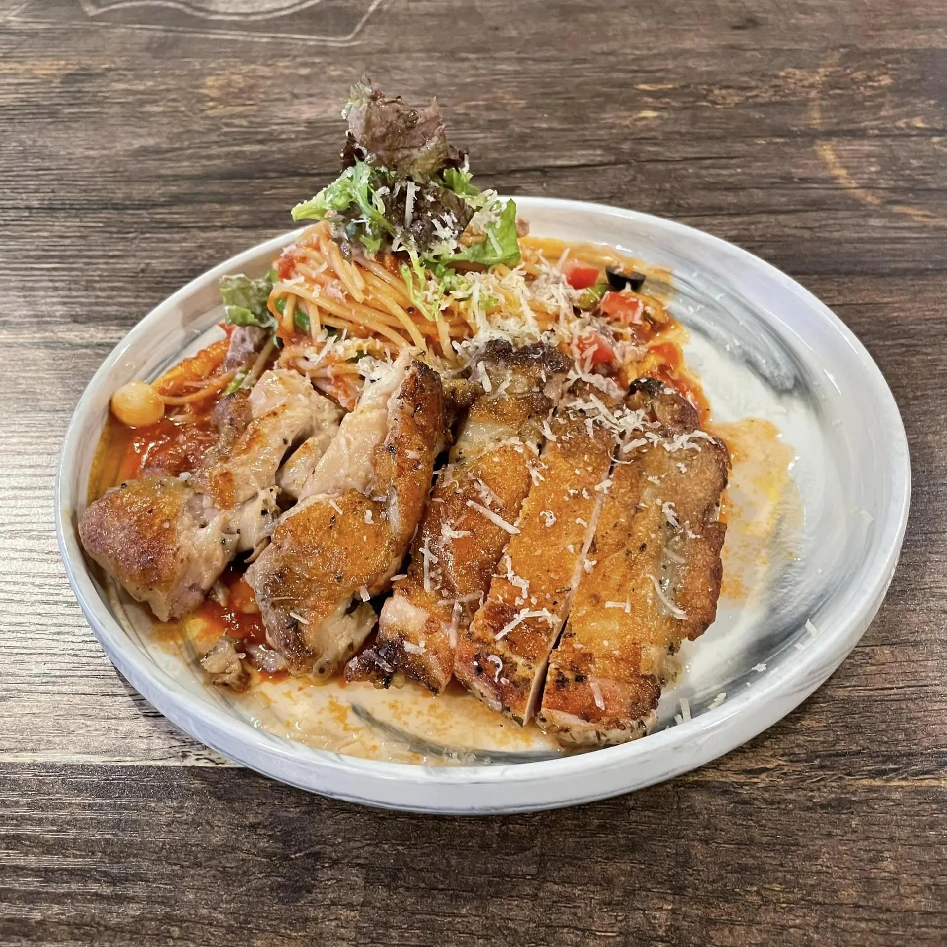 紅磚園邸以「現點現做」為宗旨,每道菜品都是新鮮製作。點了幾道招牌菜:明太子奶油香煎鮭魚排義大利麵、義式烤雞腿伐木工人番茄義大利麵和小惡魔骰子牛蒜味辣椒義大利麵。每一道菜都讓人驚艷,特別是明太子奶油香煎鮭魚排義大利麵,這道菜結合了奶油的滑順、明太子的微辣和鮭魚的鮮美,味道令人難以抗拒,讓人回味無窮。