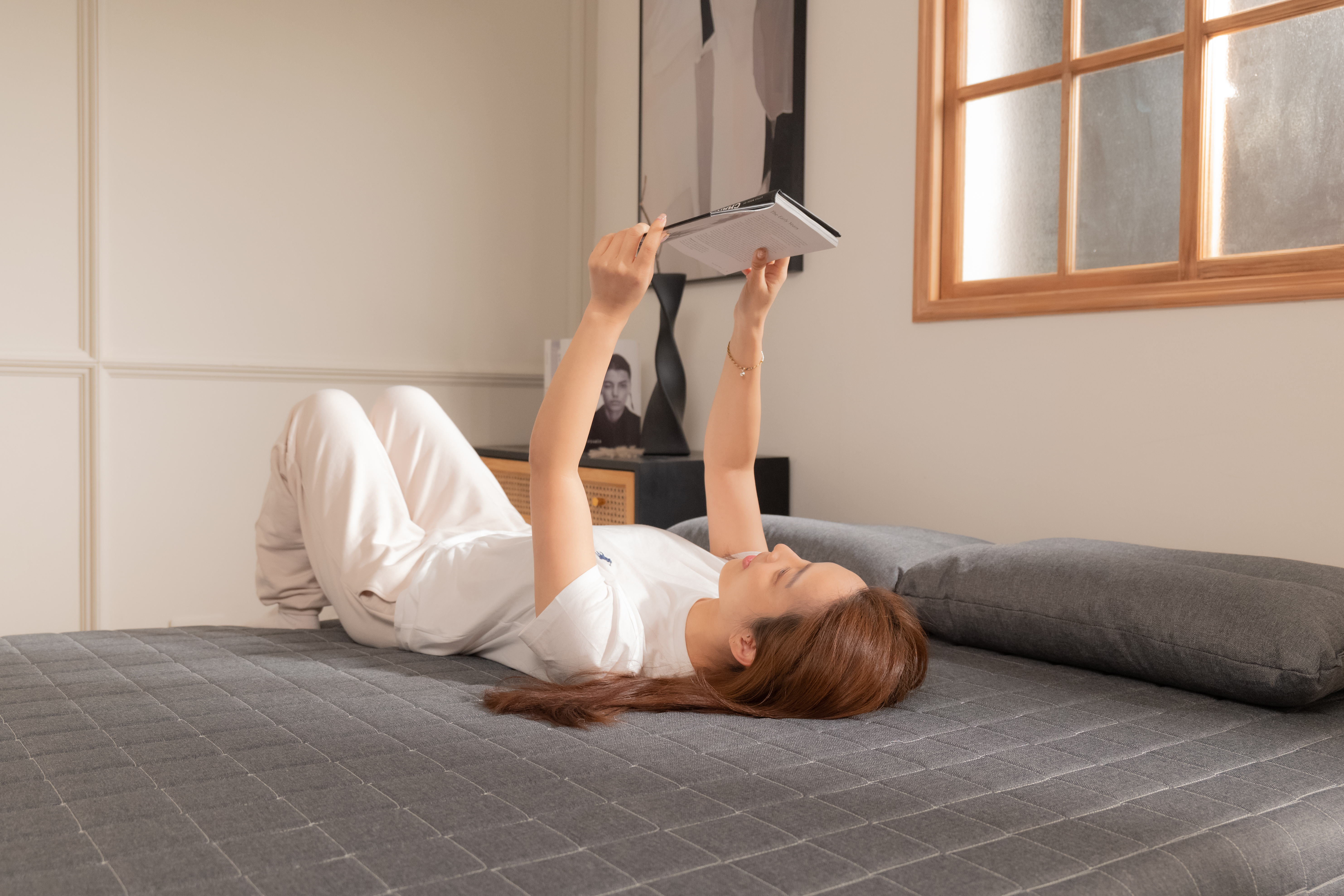 接著開始試躺,我們分別躺了軟、中、硬不同結構,真正親身感受身體怎麼回饋。每張床的材質、彈性、支撐方式,顧問都講得很清楚,而且不是用複雜的技術詞,而是直接告訴你「這張比較包覆」、「這張適合不喜歡陷下去的人」,完全是一般人也能秒懂的語言。過程不會急、不會催、不會逼你選,甚至很鼓勵你多躺多比較,因為睡覺是每天八小時的事,感受才是最準。