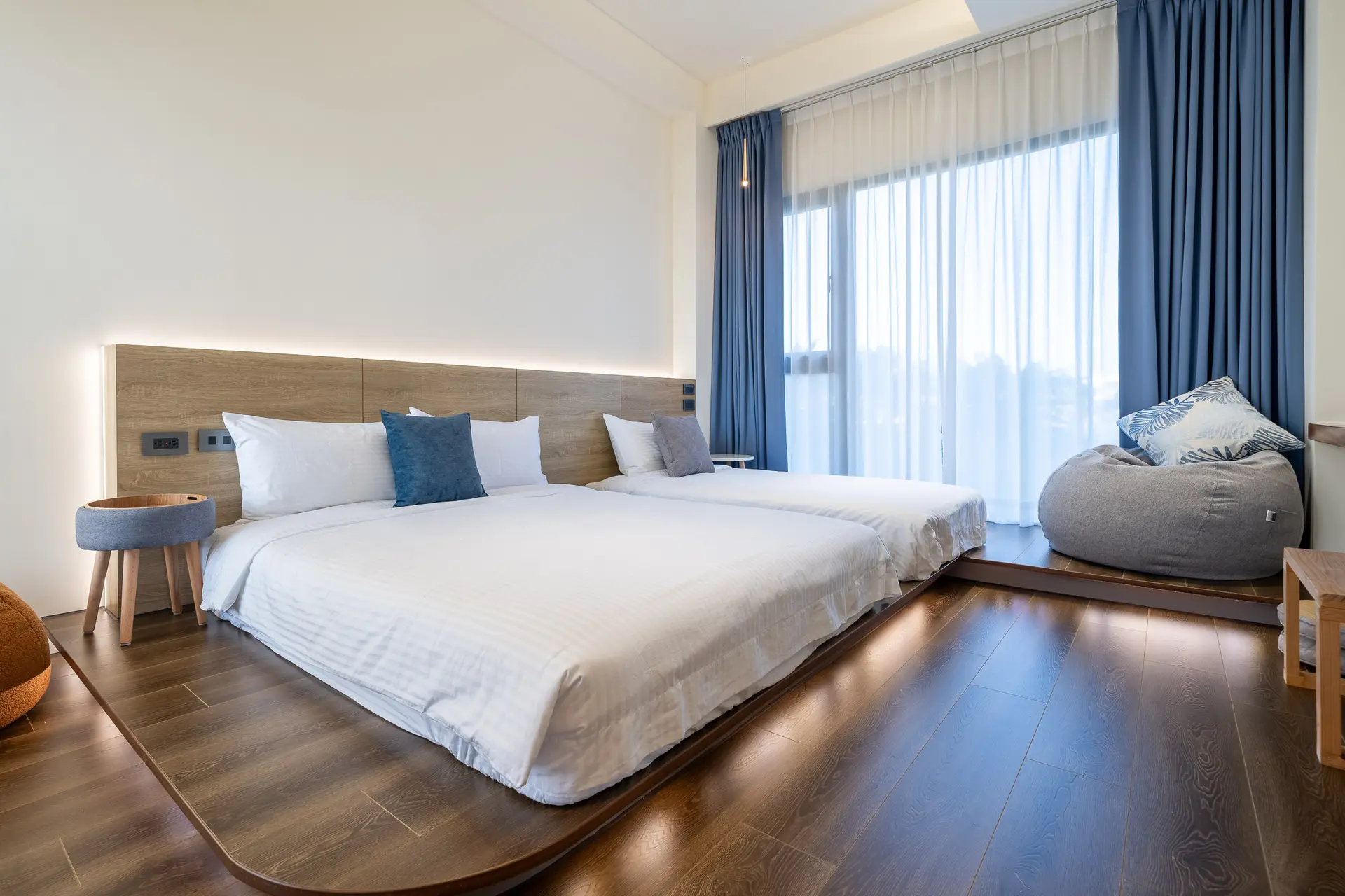 路越開越窄,四周越來越安靜,我們的聲音反而開始變多。車子還沒停穩,窗外已是一片搖晃的稻穗。民宿不高、不奢華,白色建築立在一塊空地中央,四周是綠與光。我們拉開門,風直接灌進來,連空氣都很乾淨,像什麼煩惱都被留在市區。