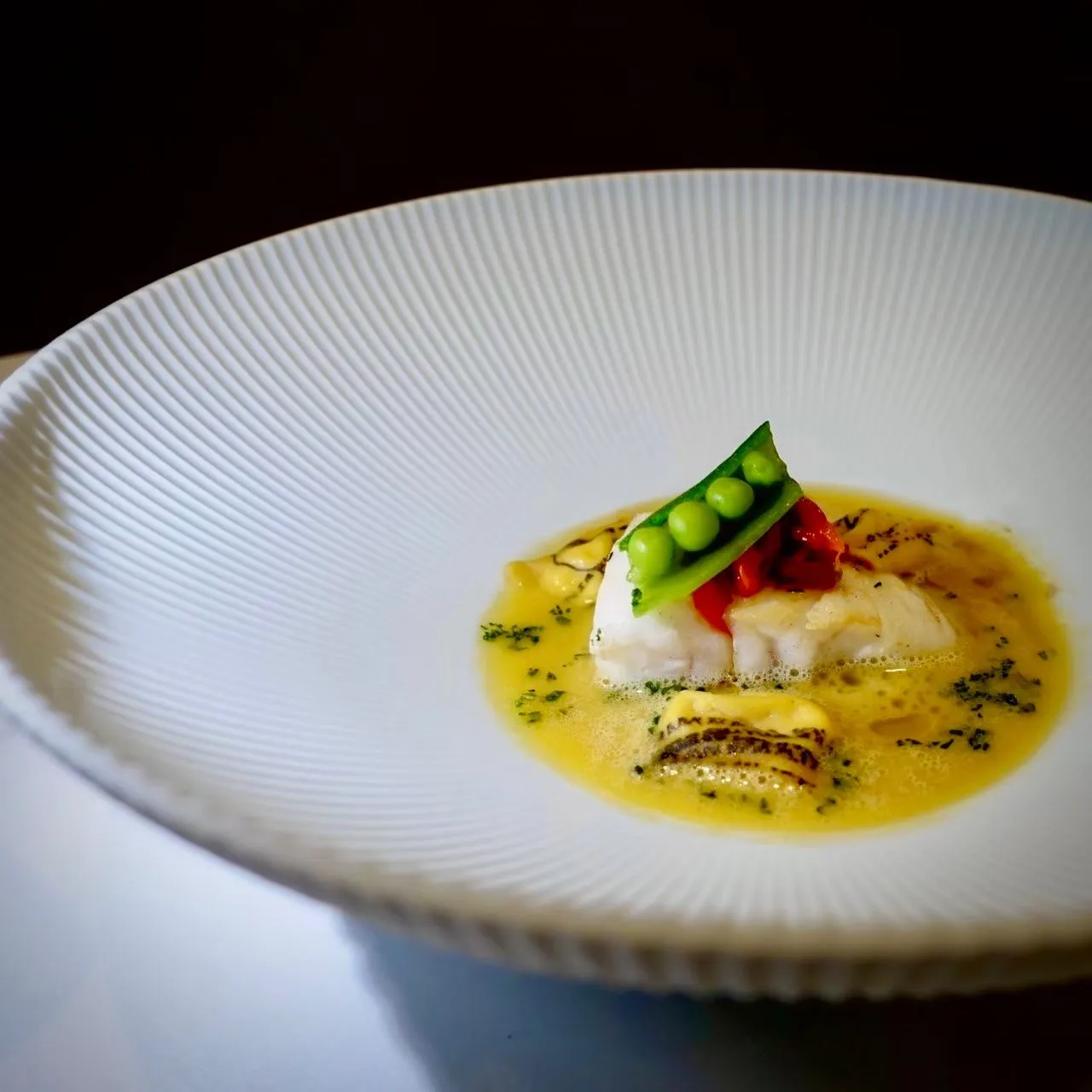 前菜的精緻程度讓我驚豔不已。薩索雞採用了來自雲林的薯索雞,經過舒肥的烹調手法,外皮金黃酥脆,肉質鮮嫩。這道菜簡單卻充滿驚喜,搭配當季的蔬菜,讓我感受到大自然的甘露與生機。