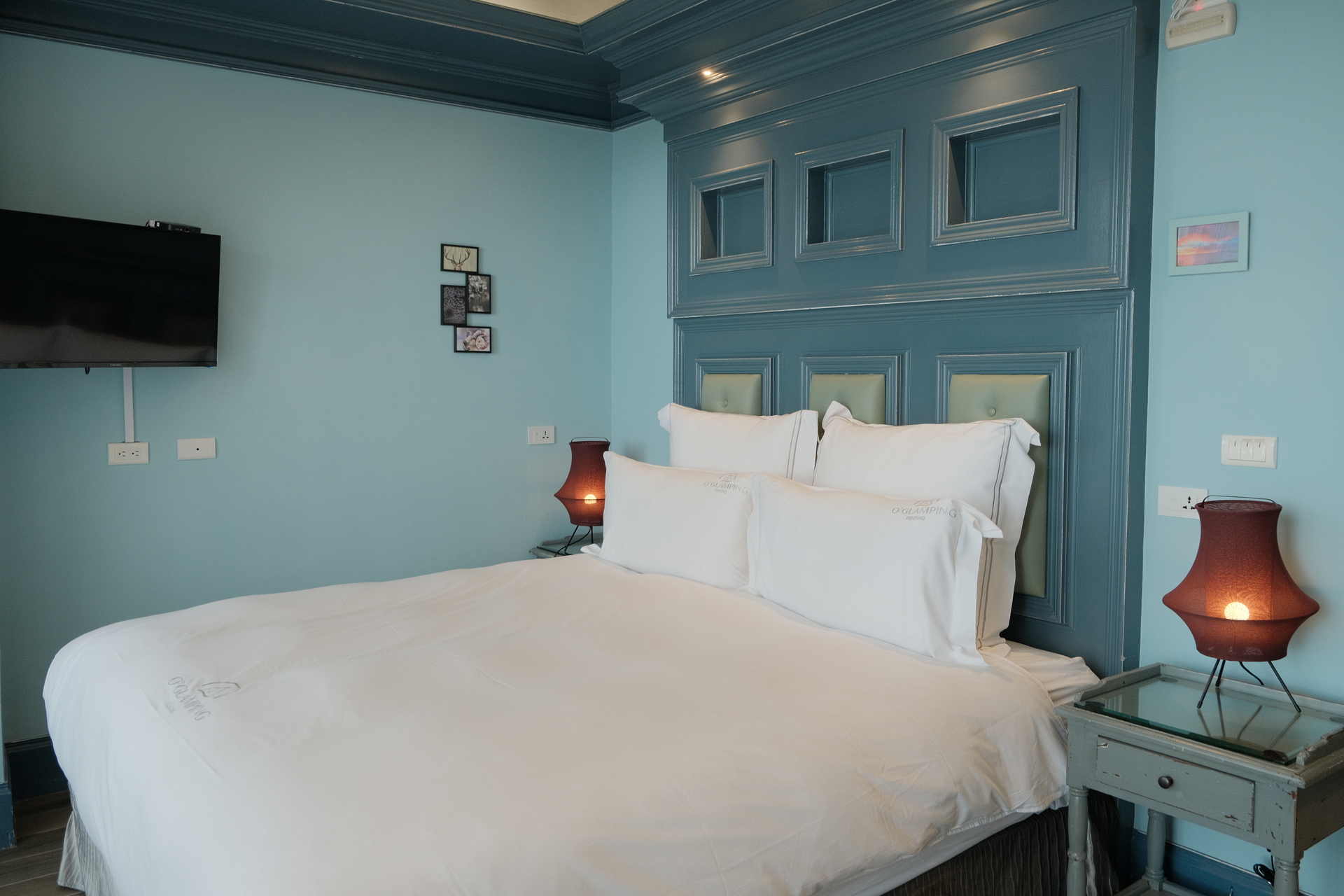我們住的墾丁101民宿,距離沙灘只要三分鐘,非常方便。選的是海景四人房,房間空間大,兩張大床非常夠睡,孩子晚上翻來翻去我們也不用擔心。陽台一推開就是藍藍的大海,白天可以讓孩子在陽台玩積木,大人泡杯咖啡靜靜看海,這才叫度假。