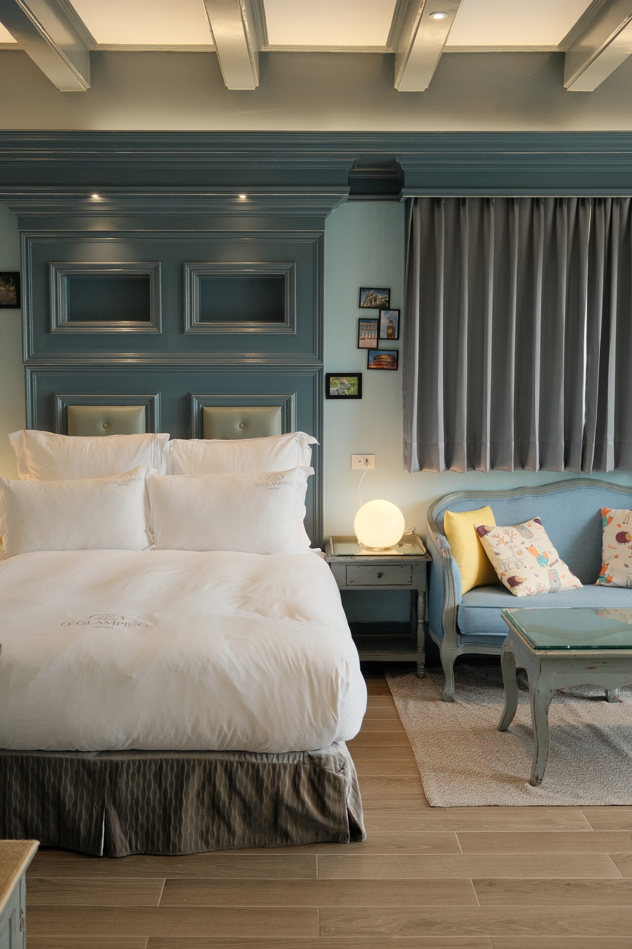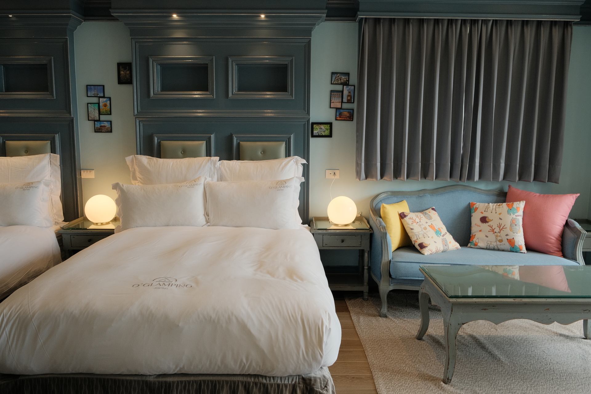 打開門那瞬間,我真的有一秒懷疑自己是不是誤闖了地中海的哪處濱海別墅。海景雙人房面積寬敞,白牆配上藍調窗簾與木質家具,簡潔中透露品味。陽台外,是一望無際的藍天與海,午後在戶外休息區泡杯茶,讓海風吹散城市的焦慮。