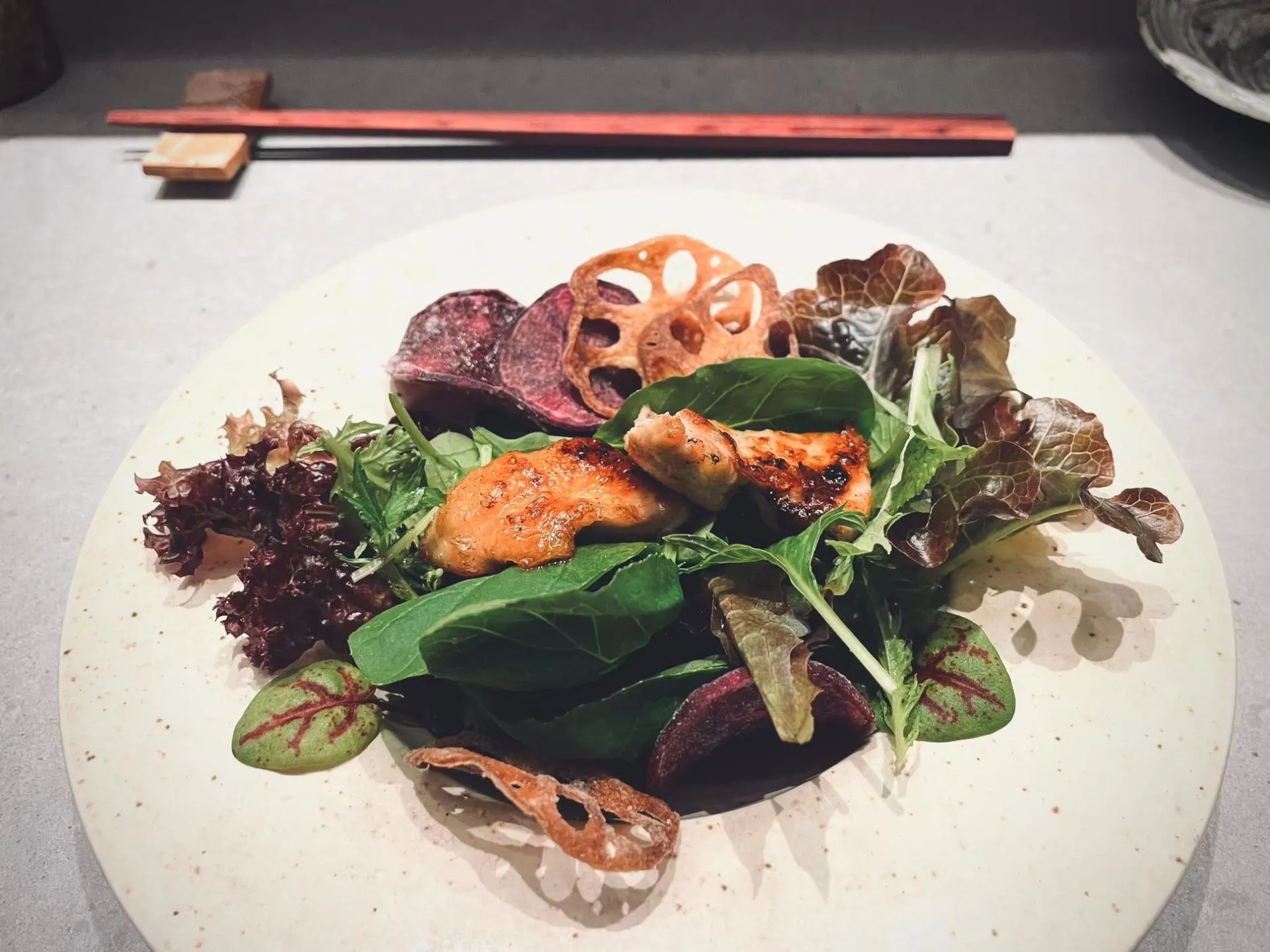 當晚,我們品嚐到的燒鳥主角是 黑羽土雞,搭配當季的蔬菜和海鮮。每一道菜都經過精心設計,食材簡單卻呈現出其最真實的風味。這樣的料理讓我感受到廚師對食材的尊重,也讓每一口都充滿了自然的氣息。