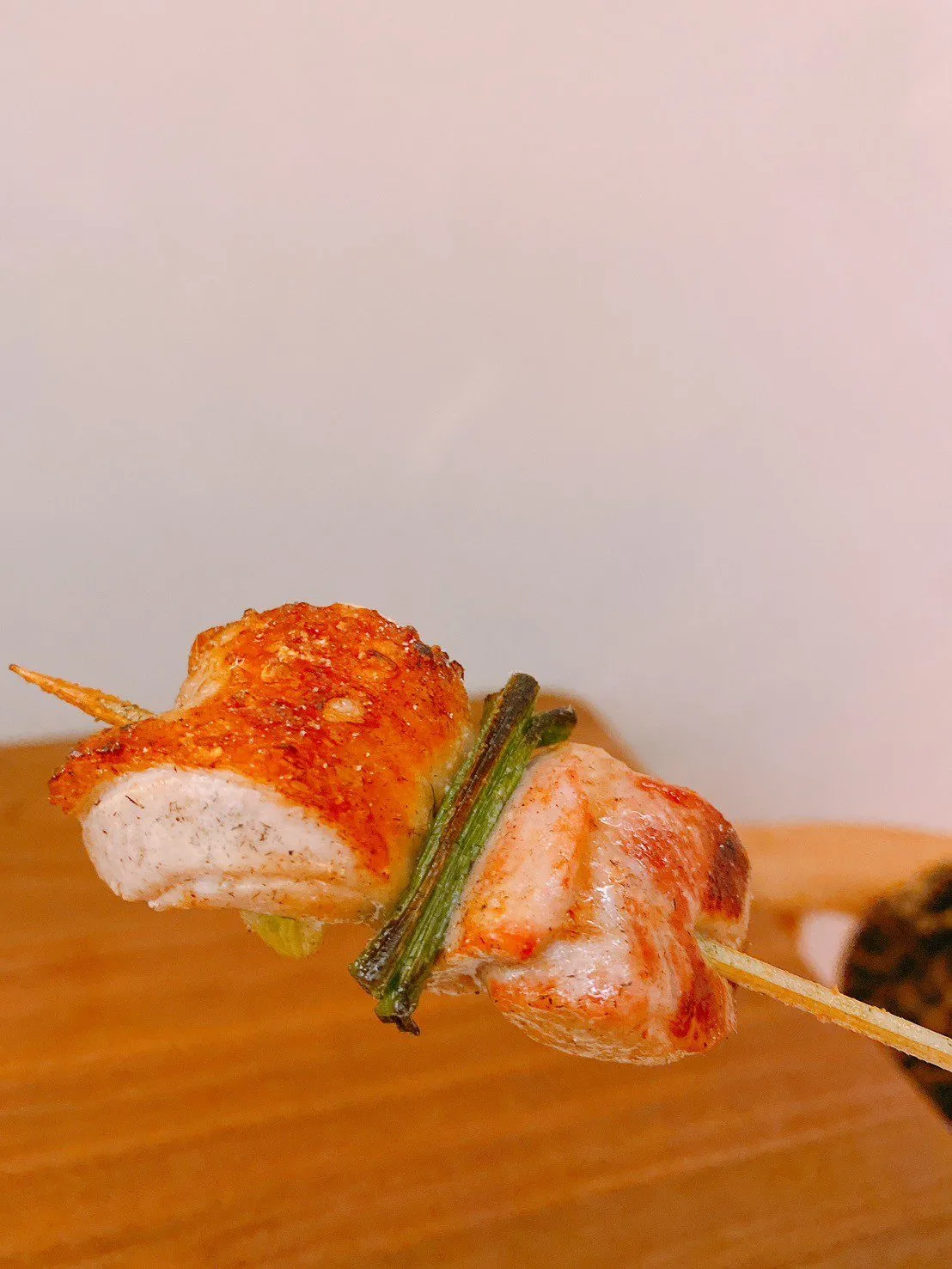 這款自然酒帶有一絲清新的果香和淡淡的酸感,與燒鳥的焦香完美融合。黑羽土雞 的肉質鮮嫩多汁,配上自然酒的酸甜,讓每一口都像是一次奇妙的旅程。一口燒鳥,一口自然酒,這種搭配不僅提升了燒鳥的口感,也讓酒的層次更加豐富。這簡直是燒鳥的靈魂伴侶,兩者完美契合,讓人忍不住想再來一口。