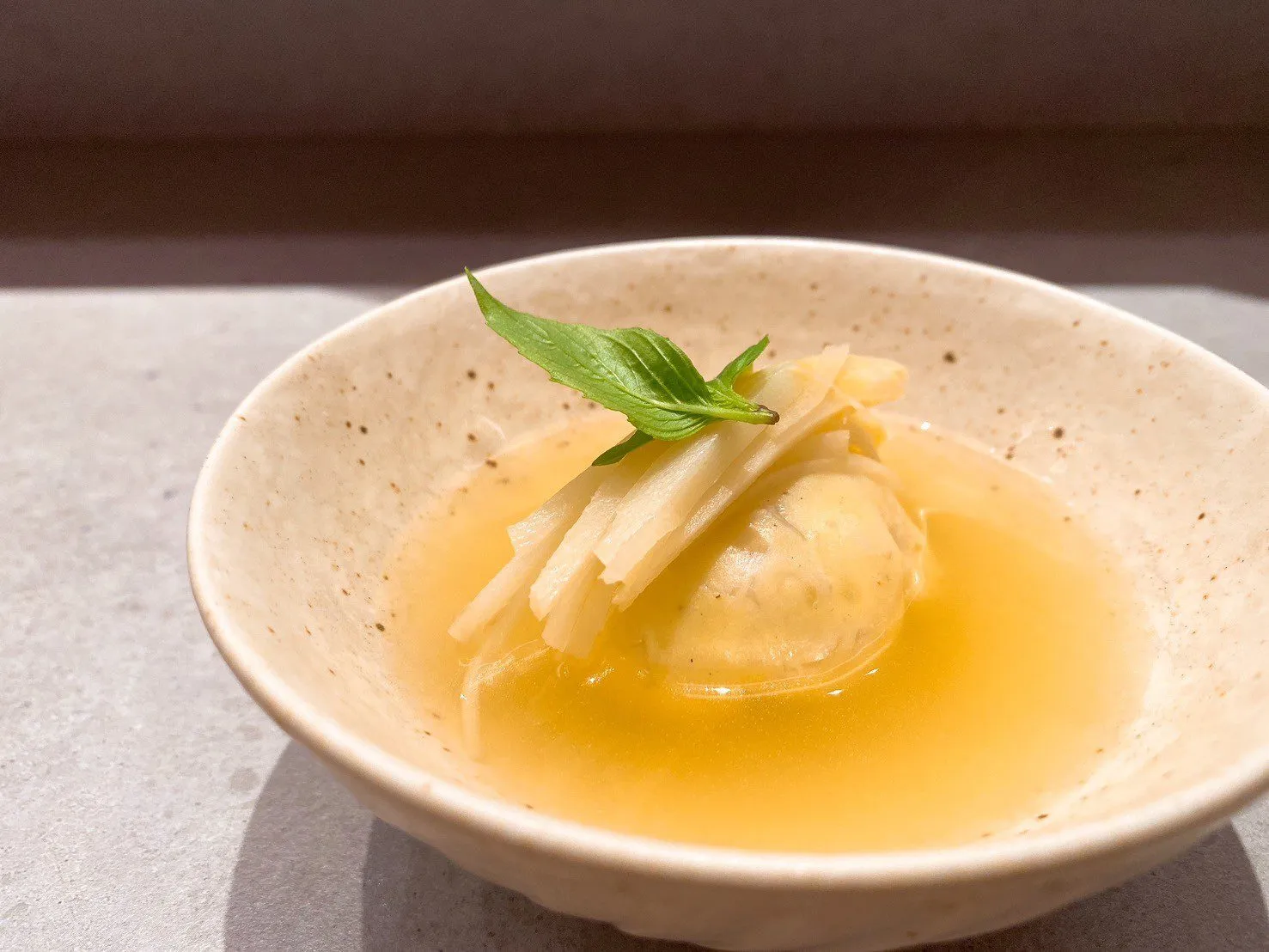 晚餐的第一道驚喜來自於 清酒。汲汲的餐酒搭配是整個 Omakase 的核心之一,而這杯清酒成為了當晚的序曲。它的清爽與微妙的甜香,為整場用餐打開了味蕾。一般來說,我總覺得清酒有點單調,但這次它的層次感豐富得讓我大吃一驚。每一口都像是一陣微風,為接下來的美食饗宴鋪平了道路。