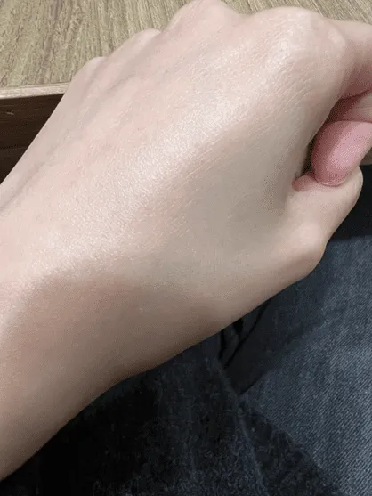 再來是身體乳,它含有乳木果油、荷荷芭油和甜杏仁油等高效保濕成分。輕輕一抹就能均勻塗抹在全身,吸收速度也很快(照片中這樣小點,可以擦整隻手臂,延展性真的很好),用完後肌膚保濕滑嫩,而且香香的,超級療癒。