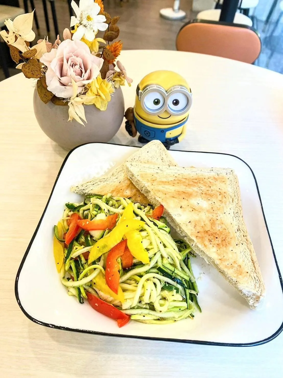 那天早晨,我匆匆趕到這家餐廳,迎面而來的便是寧靜與舒適。與外面喧鬧的街道不同,這裡的氛圍像是另一個世界。店裡的空間寬敞,牆上的綠植與木質裝潢營造出一種讓人放鬆的感覺。我找到一個靠窗的位置,陽光透過大窗照進來,讓我疲憊的身體感到一絲溫暖。這樣的環境,正是我在考試前需要的喘息之地。