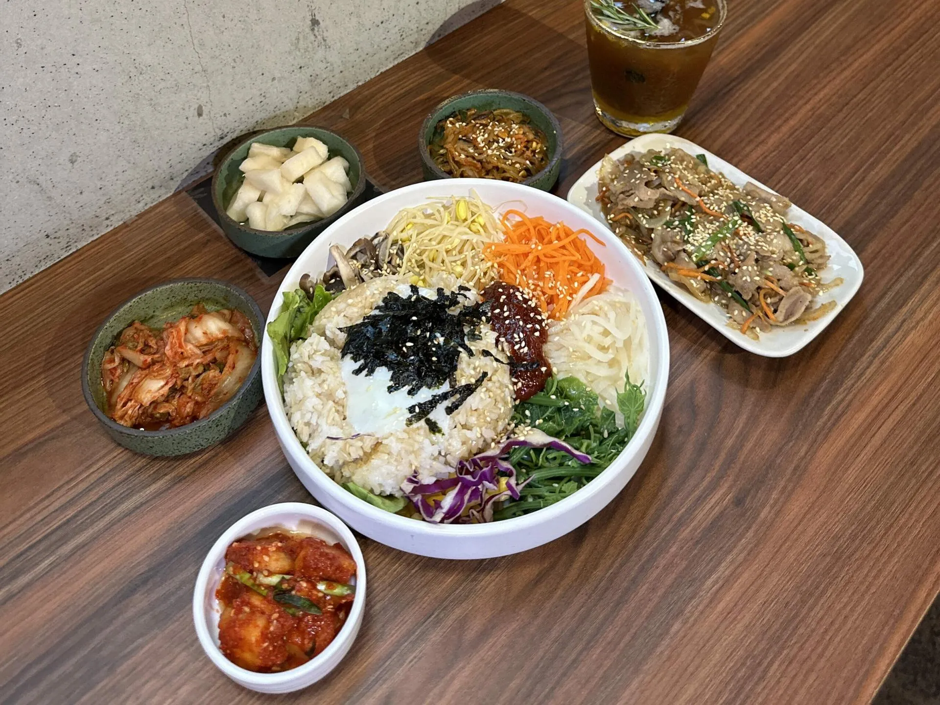 當韓式燒肉拌飯端上桌時,那濃郁的燒肉香氣讓我們的食慾大開。配菜有燒肉、胡蘿蔔、豆芽菜和香菇,拌醬味道香辣,非常開胃。每一口都讓人感到非常滿足和幸福。