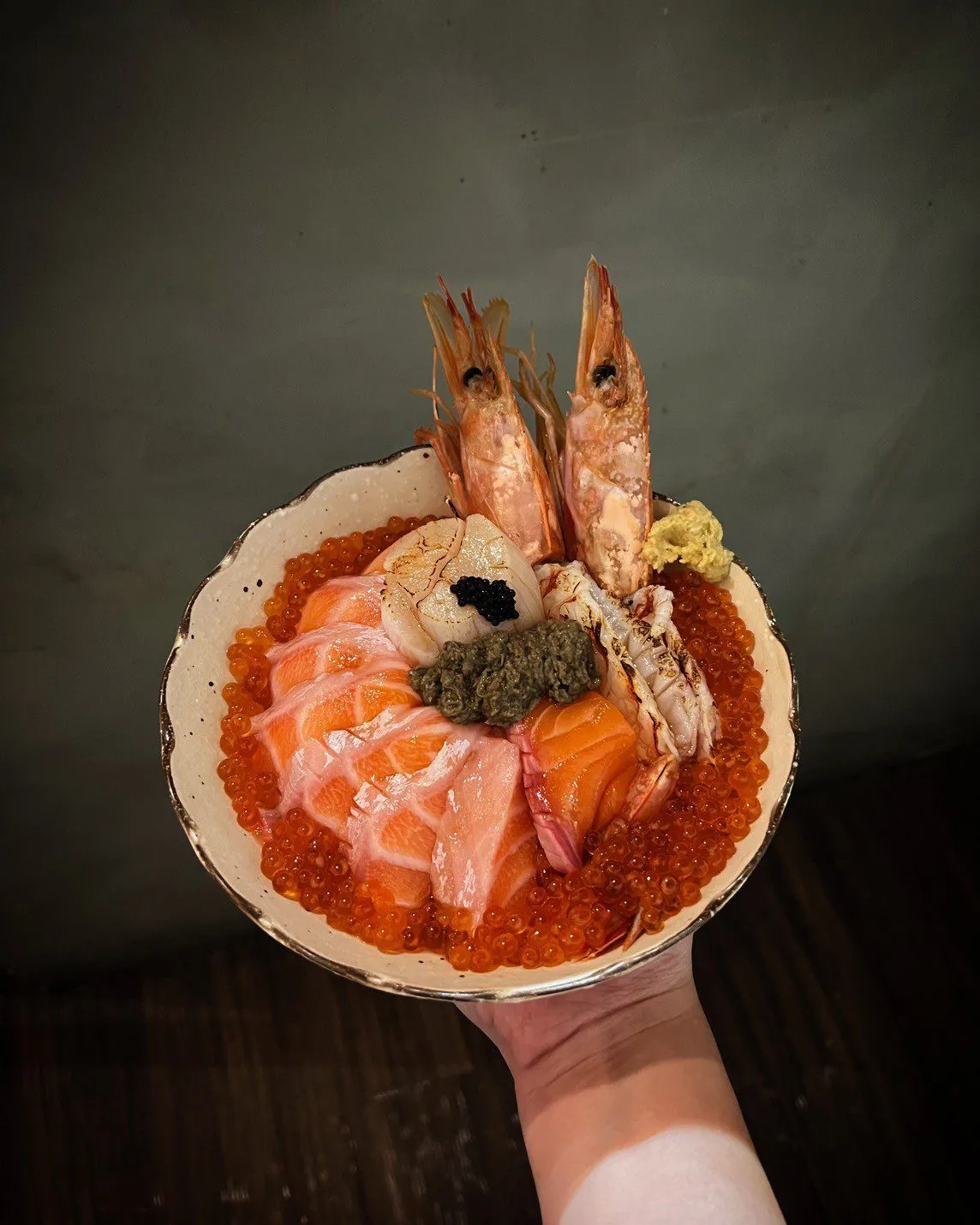 那天我點了「你說我做丼」,這碗丼飯真的是色香味俱全。裡面有蝦、鮭魚、干貝和鮭魚卵,還有蟹膏等,每一種食材都新鮮得讓人感動。尤其是那干貝,口感嫩滑,鮮味十足,真的是我吃過最好吃的干貝了。