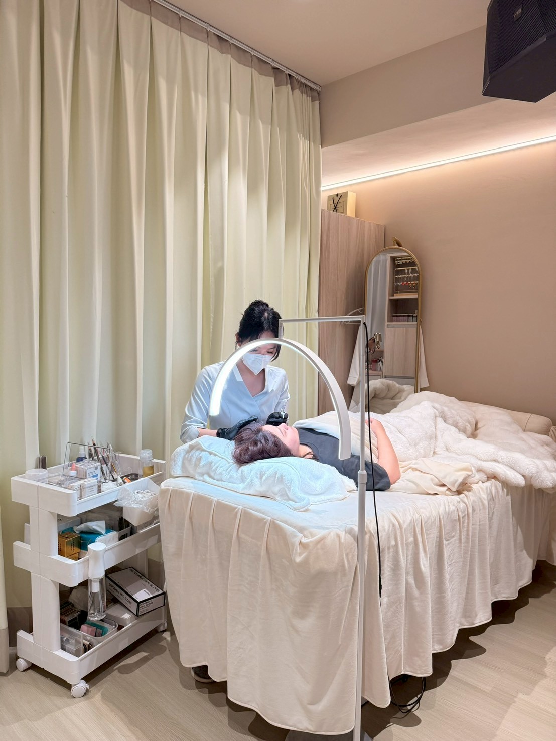 真正讓我覺得慕韻與眾不同的,是它作為一站式美容與瑜珈空間的完整性。運動結束後,不需要再趕去另一個地方,樓上就是科顏管理美容空間。從身體律動到臉部照護,整個流程自然銜接,沒有割裂感。這樣的安排,讓「照顧自己」變成一件順理成章的事,而不是額外負擔。