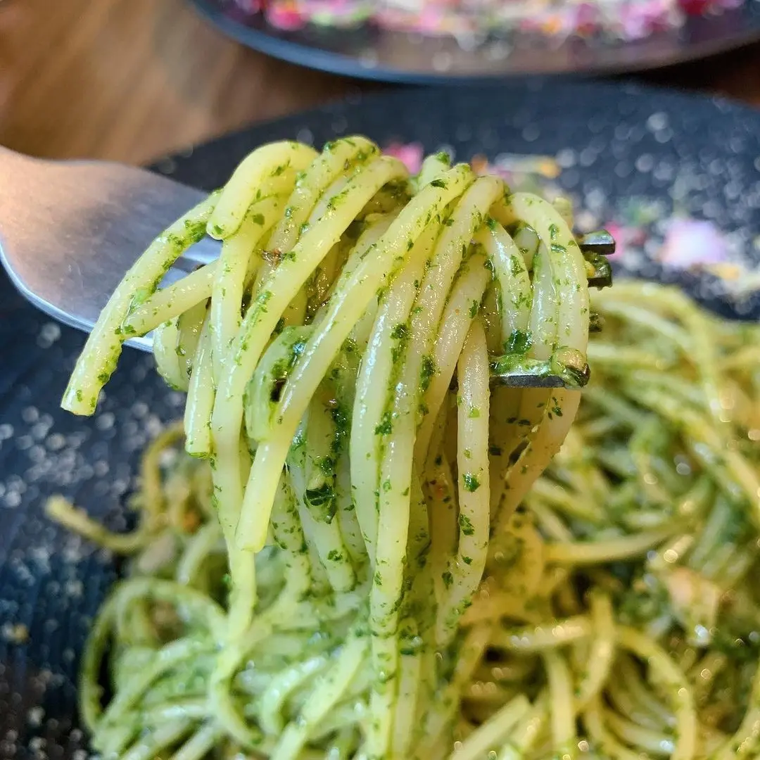 而青醬雞肉義大利麵更是讓人驚豔。主廚選用紐奧良香料醃製的雞腿肉,肉質鮮嫩多汁,搭配上香濃的青醬,濃郁的醬汁完美地裹在麵條上。這種青醬雞肉義大利麵絕不會乾柴,而是每一口都充滿了香氣和層次感。青醬的細緻和雞肉的嫩滑相得益彰,帶來一種充滿層次的滿足感。