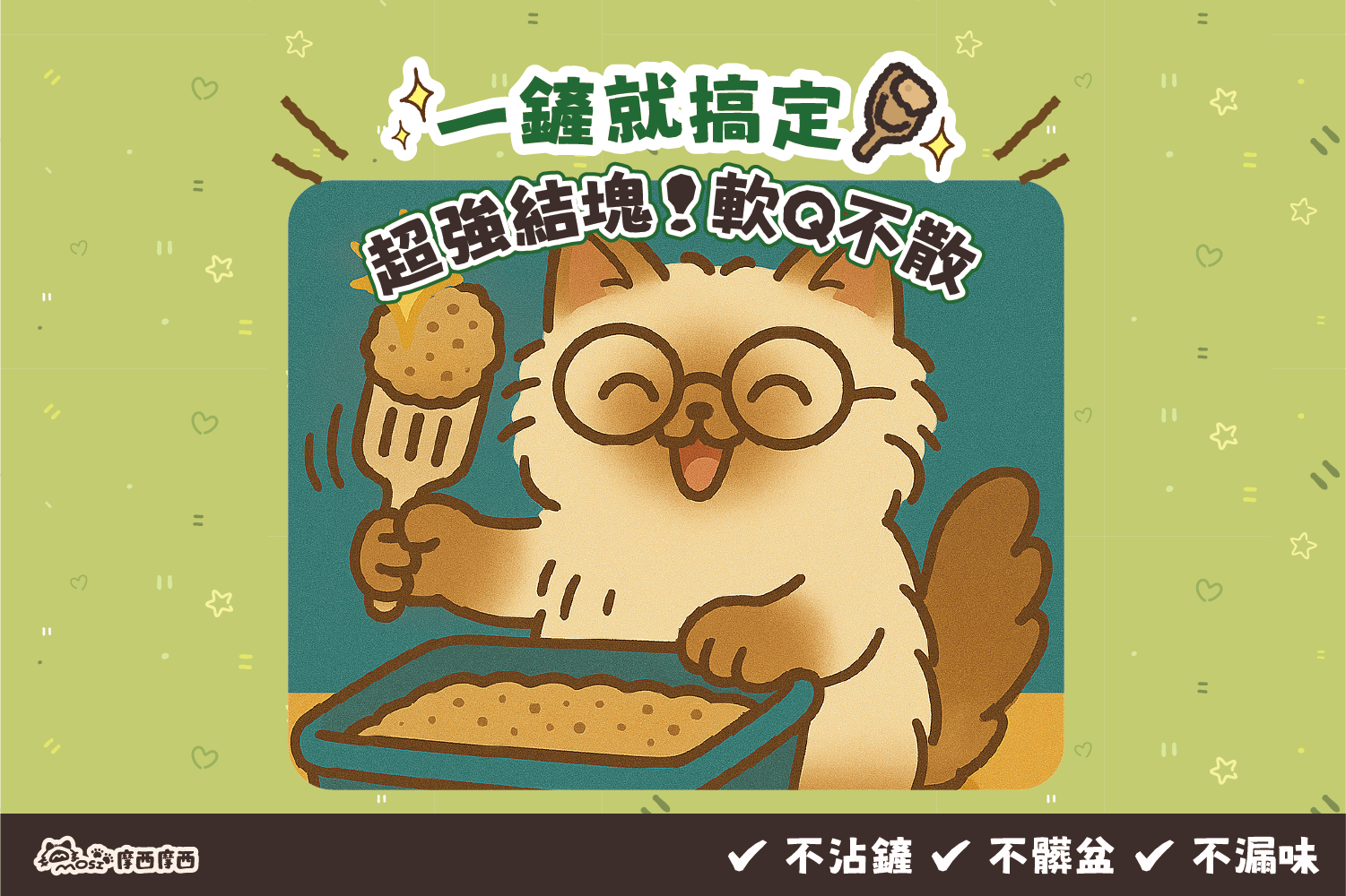 第一次使用的時候,我就被它的結團速度嚇到。尿液一碰到砂子,十秒內就快速吸收並結成超緊實的團塊,完全不會碎裂。這代表什麼?代表我鏟的時候不需要來回刮底,不需要用力去撥散砂子找結塊,鏟子一鏟就乾乾淨淨。這跟我以前用的傳統礦砂差超多,那些砂不是滲到底盤難刮,就是結團鬆散一鏟就碎,清理時間拖到讓我心煩。現在換成 Mosi Mosi 摩西摩西,真的就是「一分鐘搞定」,連我這種懶人都甘願天天清。