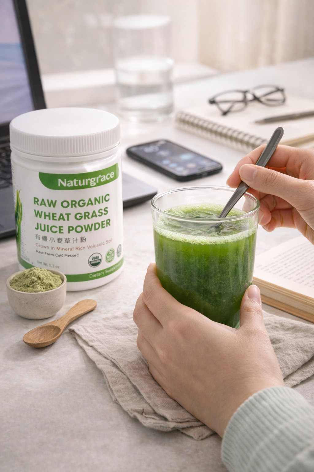 一開始選擇這款有機小麥草汁粉,其實沒有太多期待。不是為了追求改變,也不是想讓生活變得更厲害,只是單純想找一個「不需要多想」的日常補充。那種不用計算、不用提醒自己一定要完成的存在,而是自然地融入生活裡。