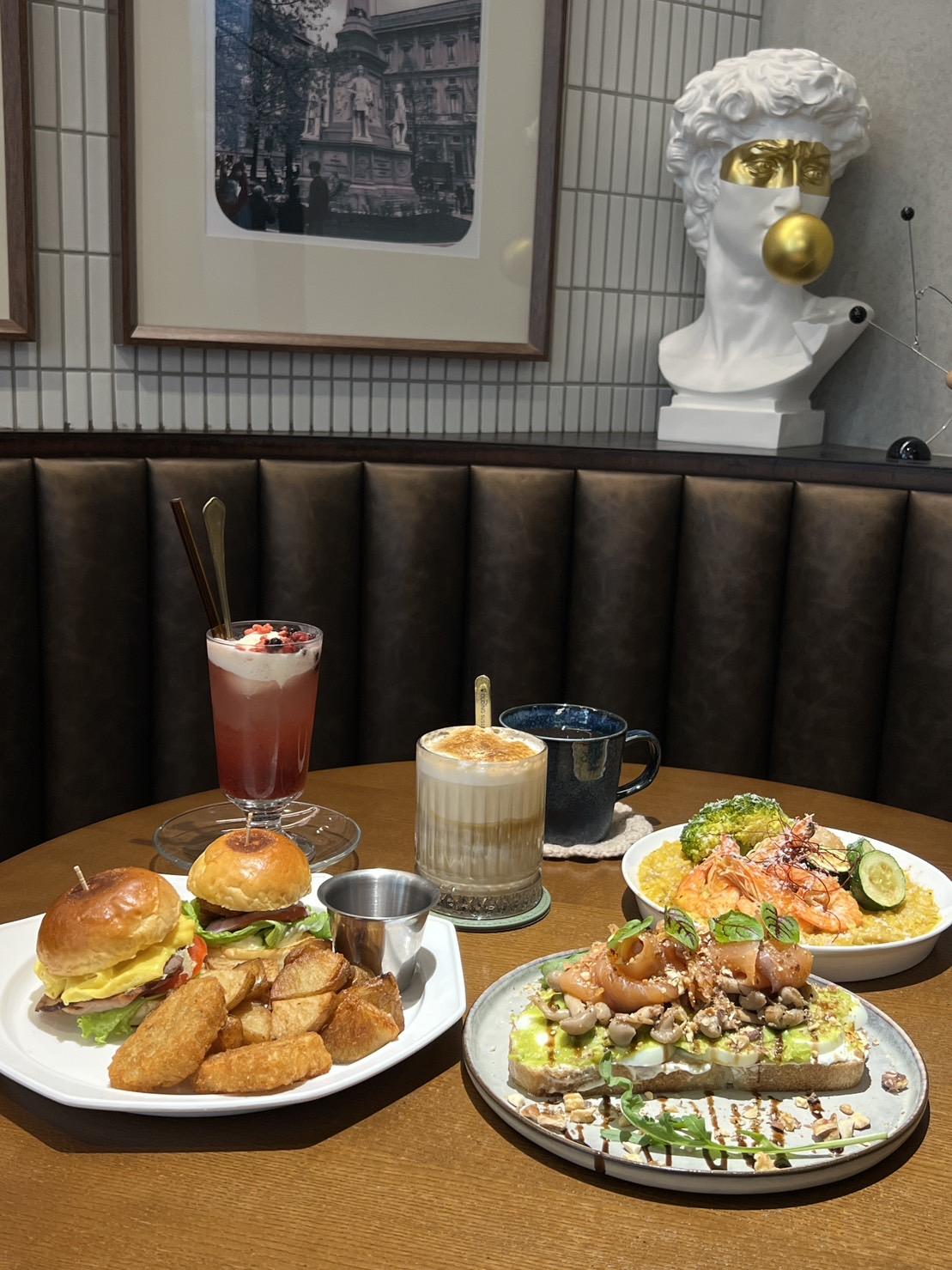 隨後,澳式早餐盤以其色彩鮮豔和營養豐富的組合吸引了我們的目光。炒蛋、培根、酪梨和炒菇等食材的完美搭配,不僅讓人大飽口福,也為這個晨光中的時刻增添了一抹色彩。