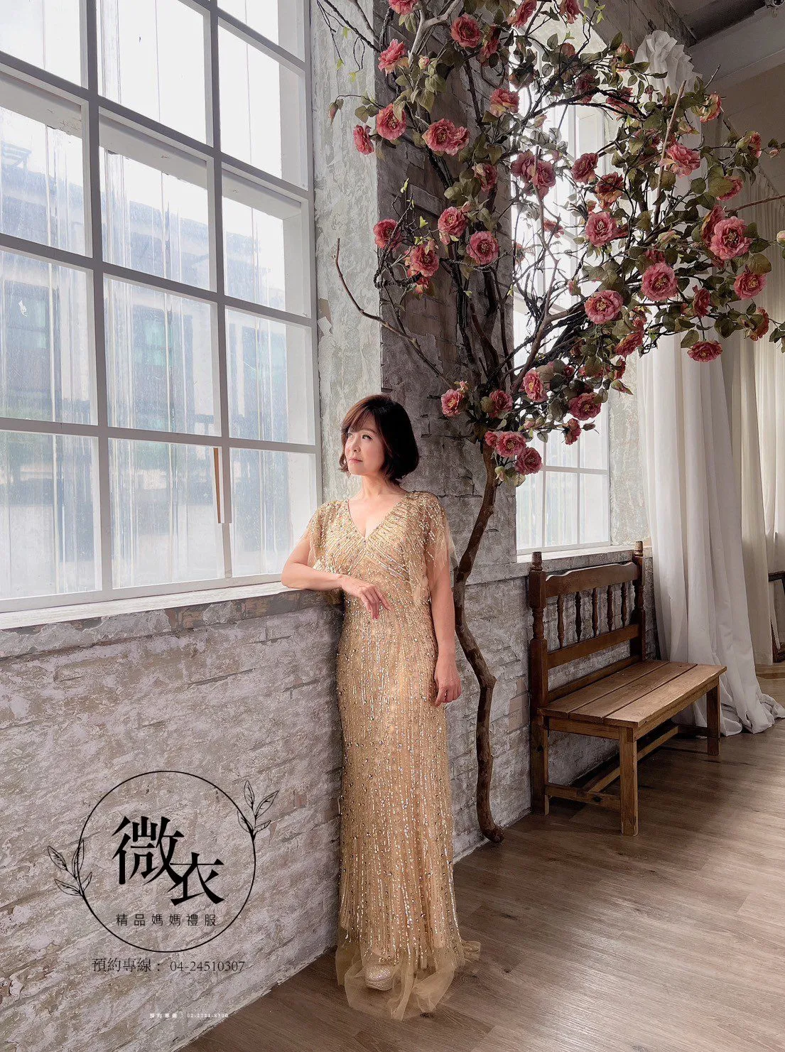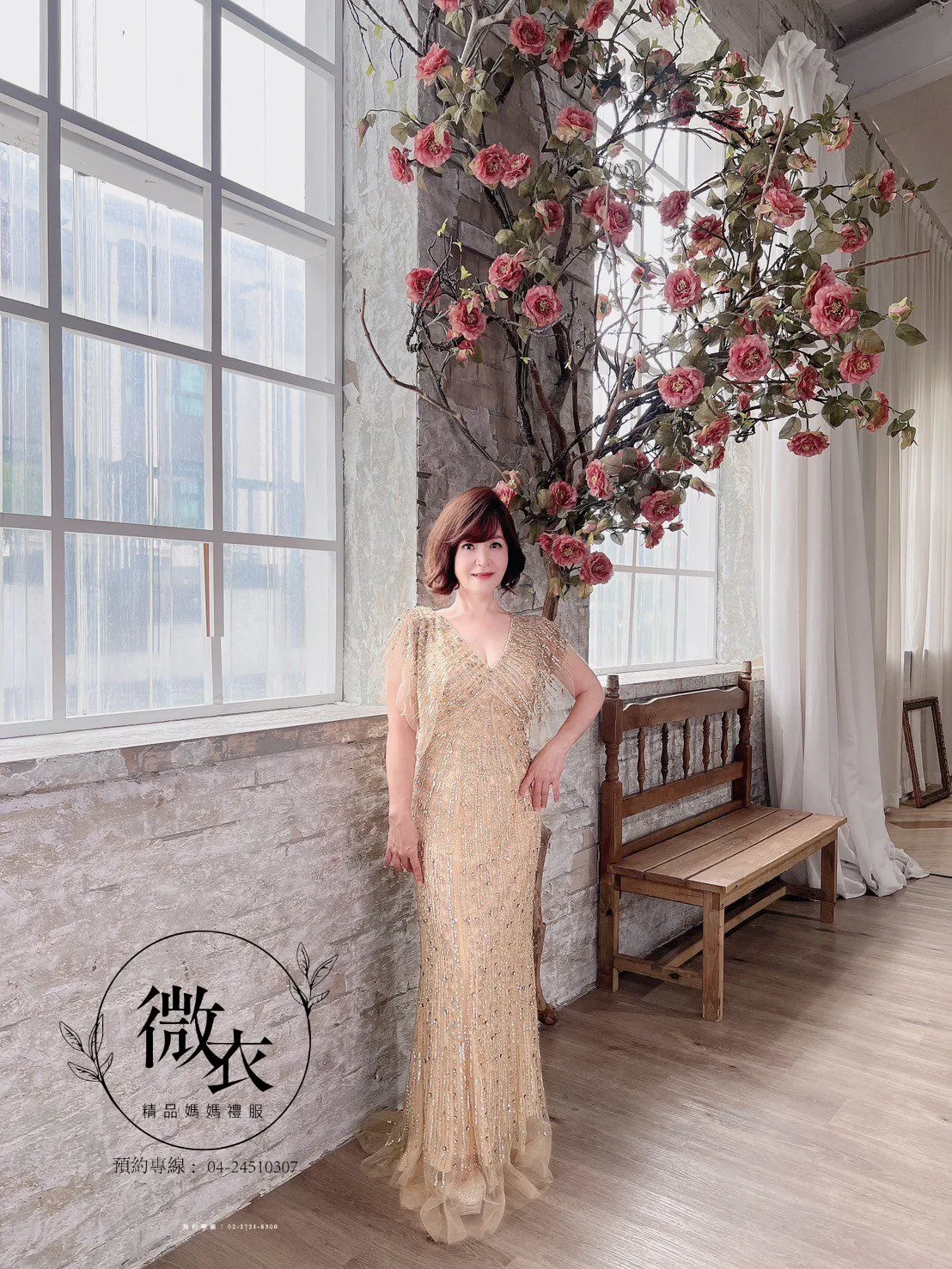 走進微衣的店裡,我立刻被店內優雅的氛圍所吸引。專屬服務人員熱情地迎接我,仔細詢問了我的需求和喜好。我告訴她,我需要一款能夠突顯氣質,且適合我目前身材的禮服。聽完我的需求後,她推薦了一款深藍色的禮服。