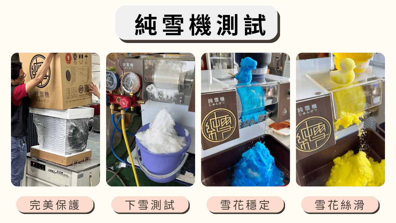 純雪雪花冰的成功,少不了它的純雪機技術。葉老闆笑著說,這台機器是整家店的「靈魂人物」。它的設計不僅節能高效,還能確保每一片冰沙的細膩與均勻。相比傳統冰品製作方式,純雪機免除了繁瑣的冰磚操作,讓每一碗雪花冰都能保持最佳的新鮮度。