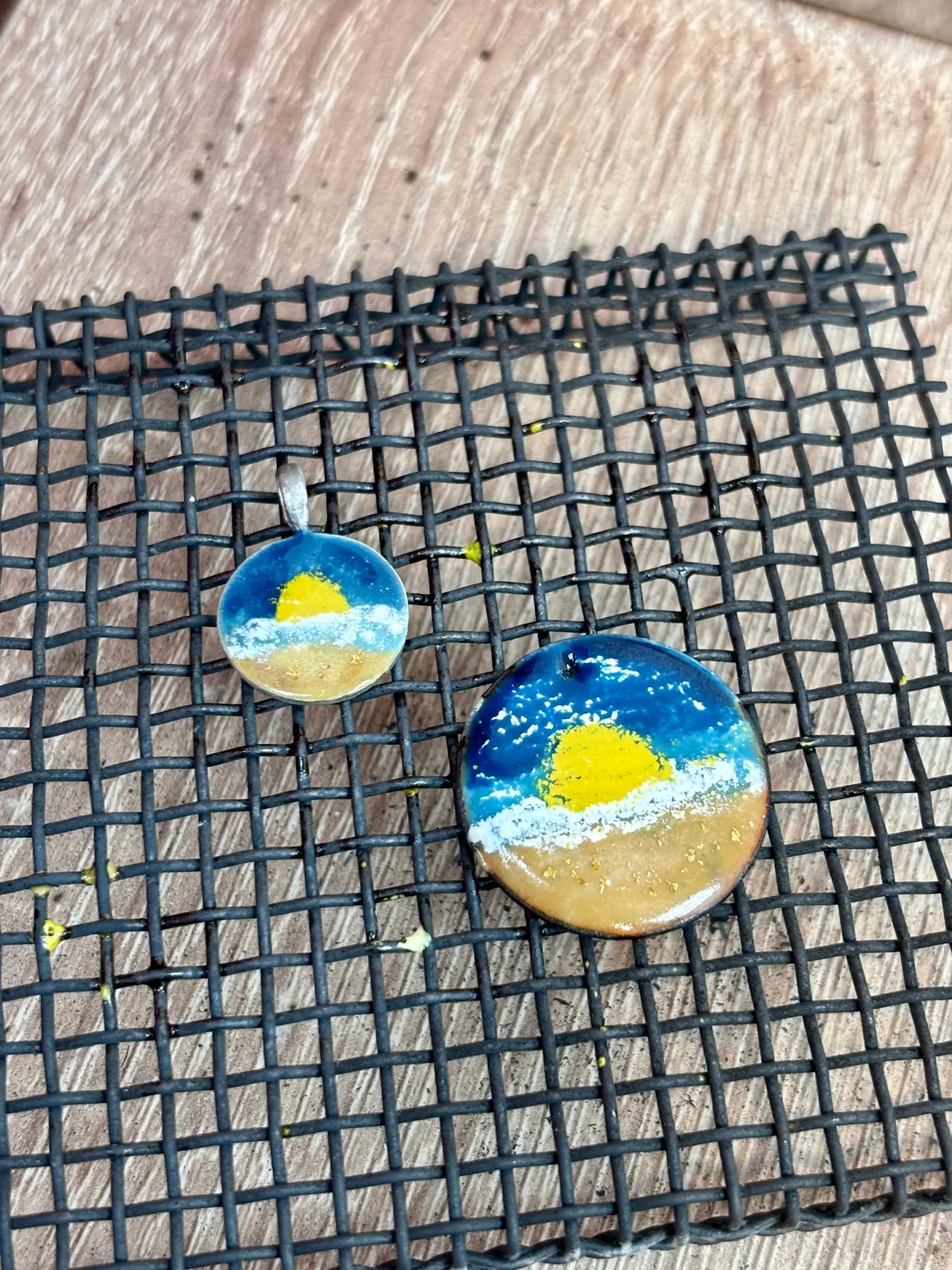 設計師親切地和我們打招呼,帶著我們挑選今天要製作的項鍊款式。孩子興奮地選了一款圓形的小吊墜,簡單又可愛。設計師耐心地向我們講解了各種工具的用途,並一步步地示範了每一個步驟。她特別注意到孩子的興趣點,給他額外的指導,讓整個製作過程變得生動有趣。這種親切的教學方式讓孩子完全投入其中,甚至還向設計師問了好多「為什麼」的問題,比如「為什麼銀片要加熱才會變軟?」這些問題不僅讓孩子學習了新知識,也激發了他的好奇心和探索欲。