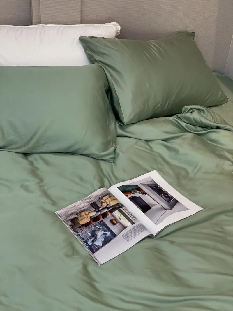 我最後訂製了一組「天絲床包四件組」與一顆他們家熱賣的「摩西多調節枕」。天絲的布料跟過去我認知中的涼感天絲完全不同,ROZZ家的天絲是帶點雲霧光澤、絲滑卻不冰涼的那種,躺上去不會覺得黏膩。而調節枕最迷人的地方,是它可以透過拉鍊調整高度與蓬鬆度,我換了三種高度才找到那個剛剛適合我的版本。