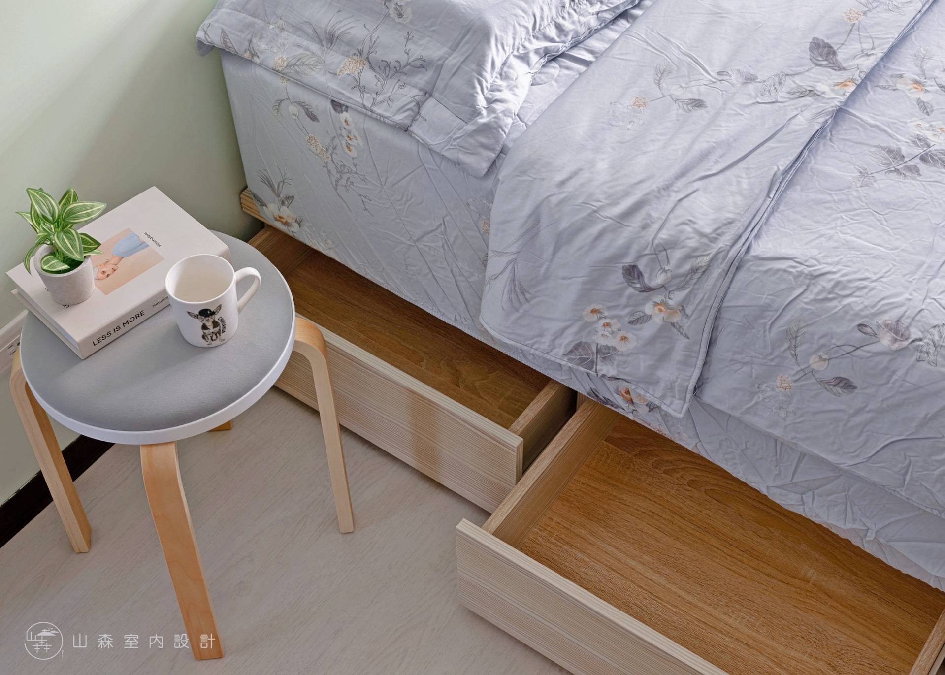 我的新家是小坪數室內裝潢,只有17坪。山森幫我做了開放式空間規劃推薦,把原本封閉的廚房打開,流理台和中島一起整合,增加了好幾層機能。最讓我驚艷的是他們的室內空間收納設計,書桌下藏抽屜、床邊有隱藏櫃,連冷氣管道上方也變成展示層板,真的讓我驚呼:「這是空間魔法師吧?」