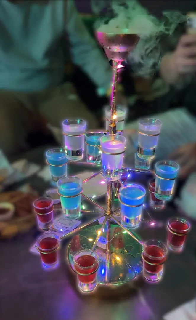 一進門,我們就被那柔和的燈光和動感的音樂吸引住了。我們點了一些特調雞尾酒,其中SHOT金字塔最讓我們驚豔。這款調酒的造型就像一座迷你金字塔,搭配上炫目的燈光效果,當服務生將這款調酒擺上桌時,瞬間成為了全場的焦點。我們每個人都拿起手機瘋狂拍照,這真的是一款適合拍照打卡的調酒。