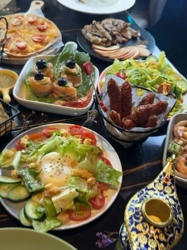 駐唱歌手的現場表演非常精彩,孩子們也在音樂中玩得不亦樂乎。美食方面,從前菜到甜點,每一道都讓人驚艷,特別是他們的特色松露烤蛋和手工調酒,讓我們全家都大呼過癮。