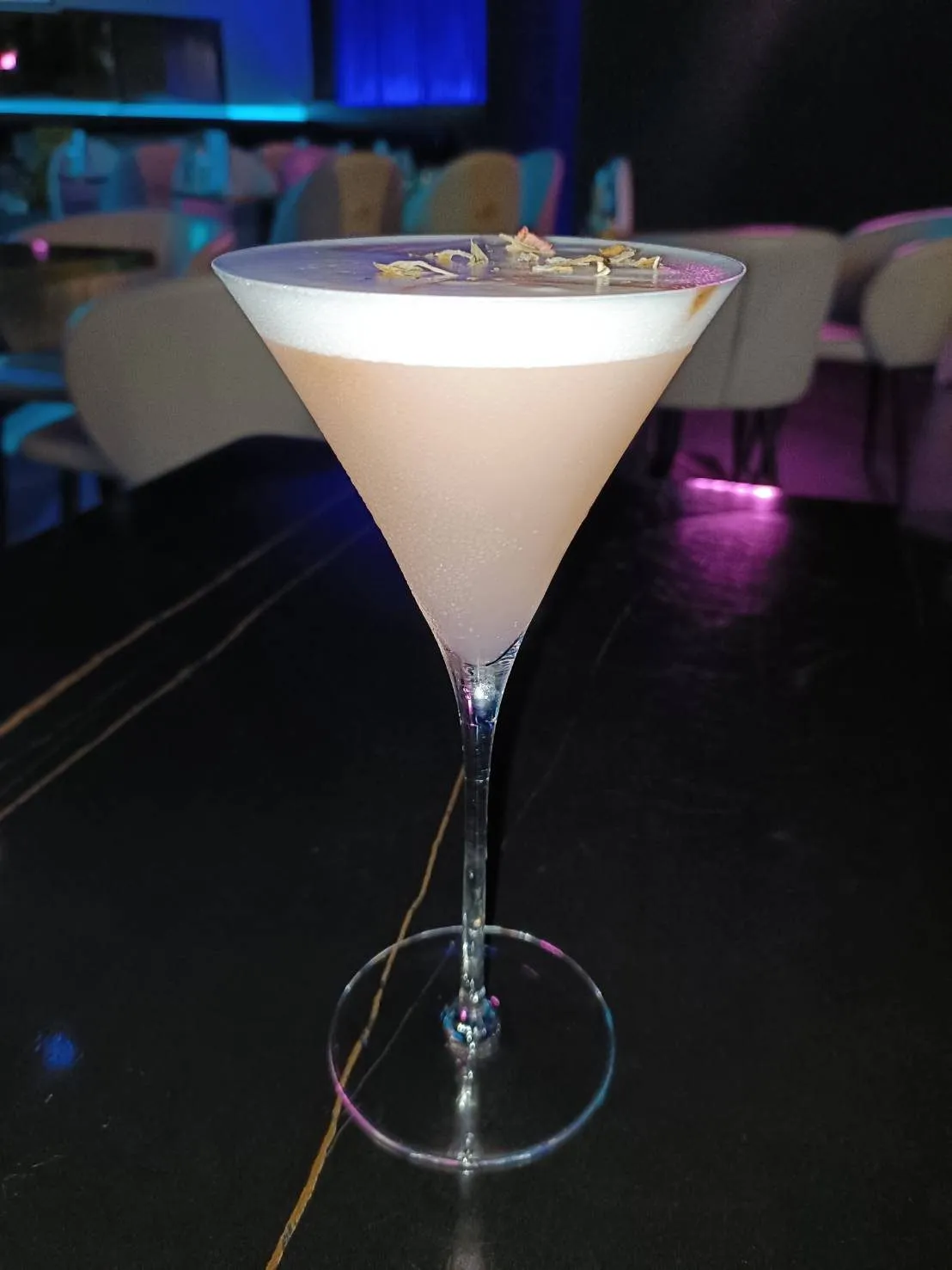 一進門,我們就被店內的裝潢所吸引,原來在桃園也有這麼精緻的餐酒館!!服務員非常熱情地為我們介紹了特色調酒和美食。我決定先點一杯太空漫步調酒。這款調酒以梅酒為基底,乾冰的效果讓整個酒杯看起來像是在銀河中漫步。當白霧緩緩升起,夢幻的氛圍讓我們感受到一種特別的浪漫,每個人都拿起手機拍照,真的太值得紀念了。