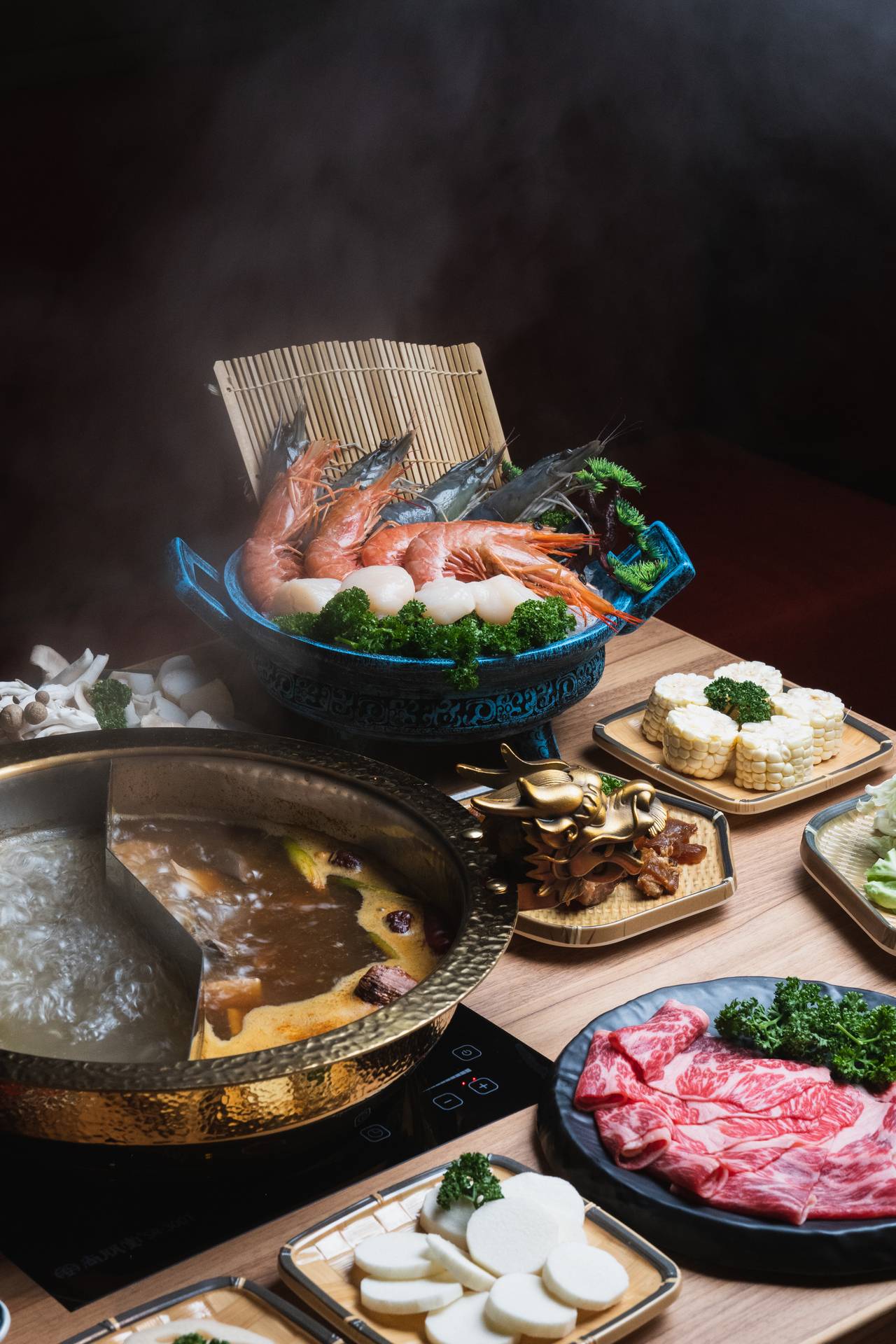 肉品我們點了PRIME無骨牛小排和台灣黃牛胸肉,油花分佈漂亮,涮到七分熟入口,柔軟又有肉香。蝦仁漿是必點,蝦肉粒粒分明,吃起來有真實感,不是隨便攪出來的那種粉感口感。