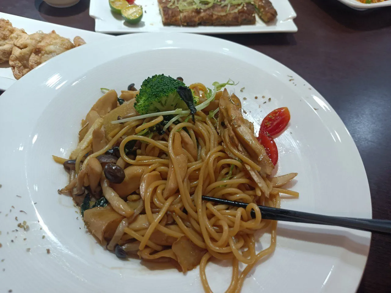 我點了一份三杯義大利麵,這道菜結合了台式三杯的香氣與義大利麵的Q彈口感,讓我不禁感嘆素食也能這麼美味。