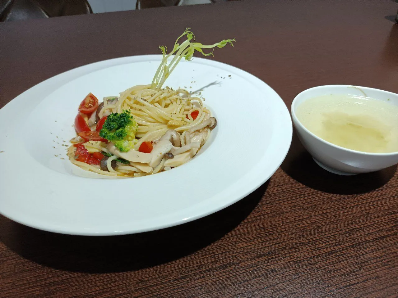 雞肉丼的米飯鬆軟可口,仿雞肉的口感也非常逼真,搭配上獨特的醬汁,每一口都充滿了幸福感。清炒塔香義大利麵則是另一種風味的體驗,麵條彈牙,塔香的香氣瀰漫在口中,每一口都讓人回味無窮。