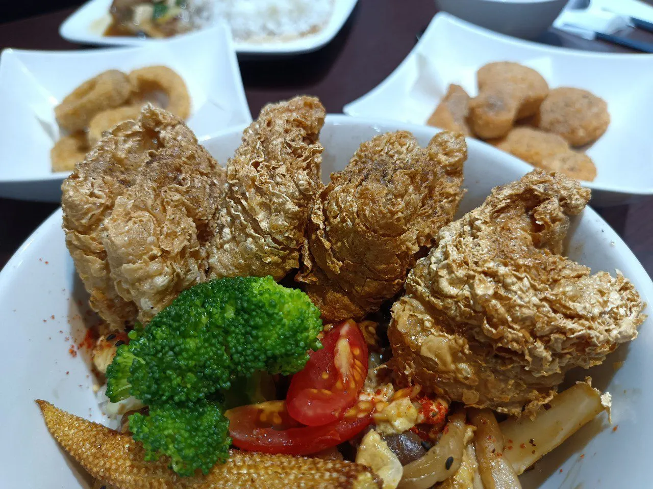 這次我點了店內最受歡迎的幾道菜品:香酥豆包丼、清炒塔香義大利麵和炸水餃。每一道菜品都讓我驚喜不已。