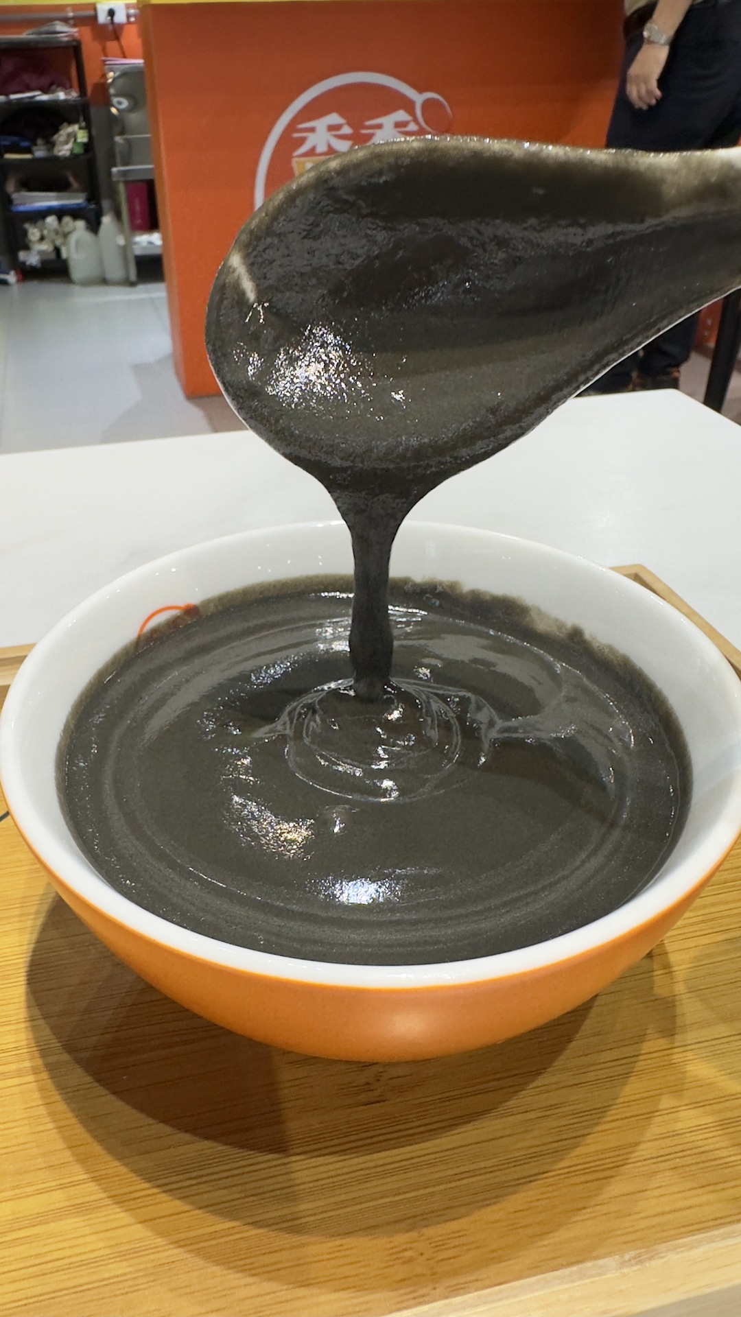 那一口下去,我只想說,這碗芝麻糊不簡單!芝麻的香氣濃郁得像是在口腔裡爆開,每一口都能感受到細膩的顆粒感,口感順滑,甜度恰到好處,不會過於黏膩。據說他們家的芝麻都是經過低溫烘焙,再慢火熬煮,才能達到這樣的香濃效果,難怪能讓我這個見多識廣的老饕也讚不絕口。