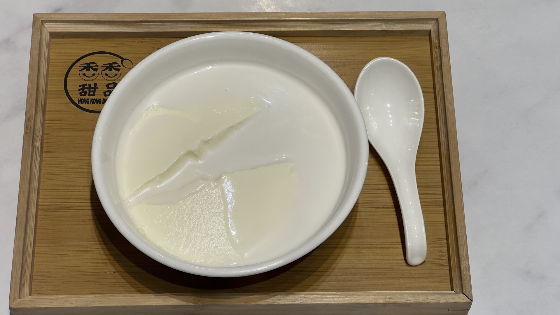 「請給我一碗經典杏仁糊。」我假裝若無其事地點餐,但內心早已按耐不住興奮,準備大展「偵探功力」。很快,一碗熱氣騰騰的杏仁糊就被端到我面前。雪白如玉的杏仁糊表面光滑細膩,像是一個完美的「案件現場」,等待我這位「甜品福爾摩斯」進行深入調查。