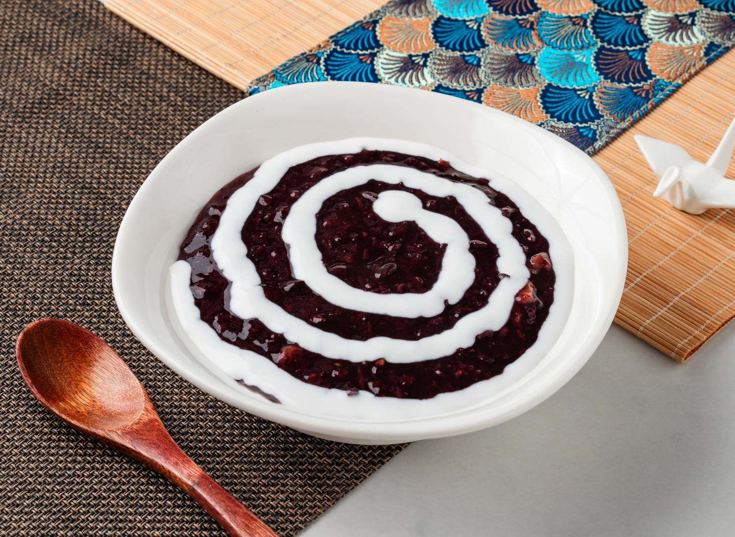 我偷偷舀了一口,也被這黑糯米甜品的味道驚艷到了。溫熱的甜湯在口中化開,黑糯米的自然香氣混合著椰奶的濃郁,沒有過多的糖分,甜而不膩,連我這個平時不愛甜食的大人都忍不住多吃了幾口。