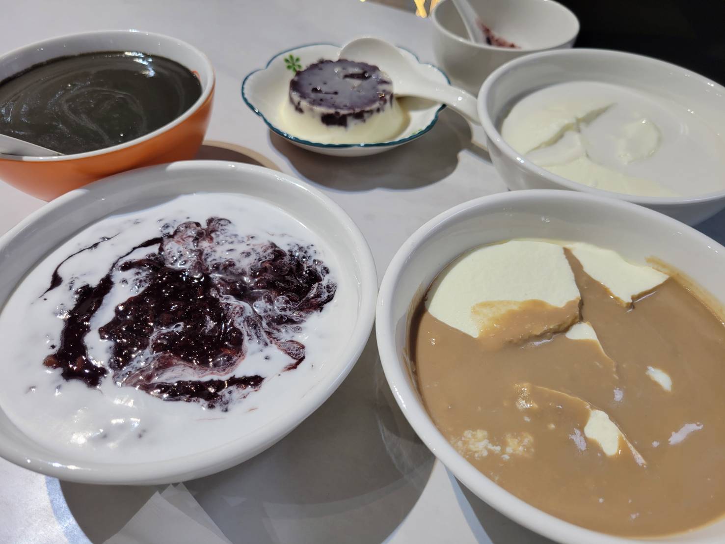 店裡還有許多其他港式甜品,比如芝麻糊、杏仁糊、順德燉奶、楊枝甘露,甚至還有「雙拼」系列,讓選擇困難的「甜品探險家」也能一次品嚐到兩種風味。我悄悄觀察到,旁邊桌的一位小姑娘點了「核桃糊+楊枝甘露」的雙拼,冰火兩重天,讓我這個「資深甜品愛好者」也有點心動,腦中已經記下來,準備下次再來挑戰!