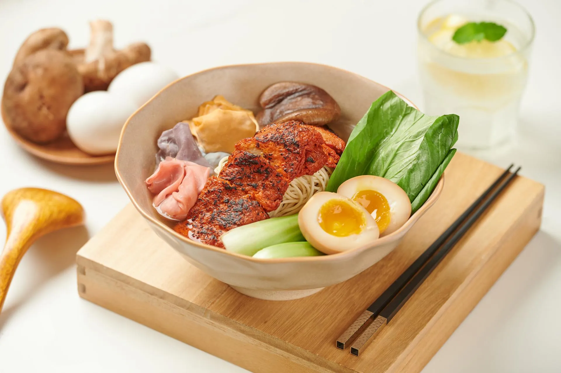 我選了一個安靜的角落座位,點了「松露蘑菇濃湯」和「馬來七彩餛飩叉燒麵」。這些菜餚不只充滿創意,更是一種對自己身心的犒賞。松露的濃郁香氣和蘑菇的鮮美,在每一口湯中都得到了完美的展現。而七彩餛飩的Q彈口感和內餡的飽滿,更是讓我在品味美食的同時,也感受到了一份內心的平靜。