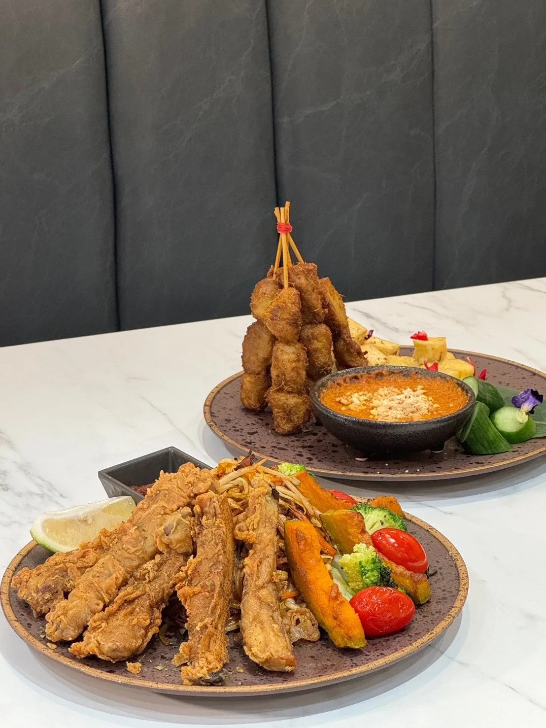接著,我們又點了「馬來沙嗲派對」。沙嗲醬香濃帶有顆粒感,微辣的味道讓人越吃越上癮,搭配脆口的炸豆腐和清爽的小黃瓜、鳳梨,這道菜真的讓我們彷彿置身於馬來西亞的街頭,享受著地道的風味。