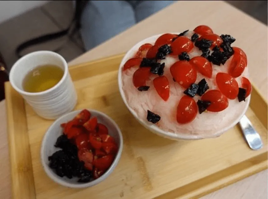 進店後,首先映入眼簾的是這裡簡約而富有設計感的裝潢。牆上掛著各種網美的打卡照,每個角落都佈置得非常用心,讓人一進來就感受到滿滿的清新感。我點了一款店內非常受歡迎的番茄梅蜜,這款冰品不僅聽起來非常特別,而且非常適合夏天解暑。