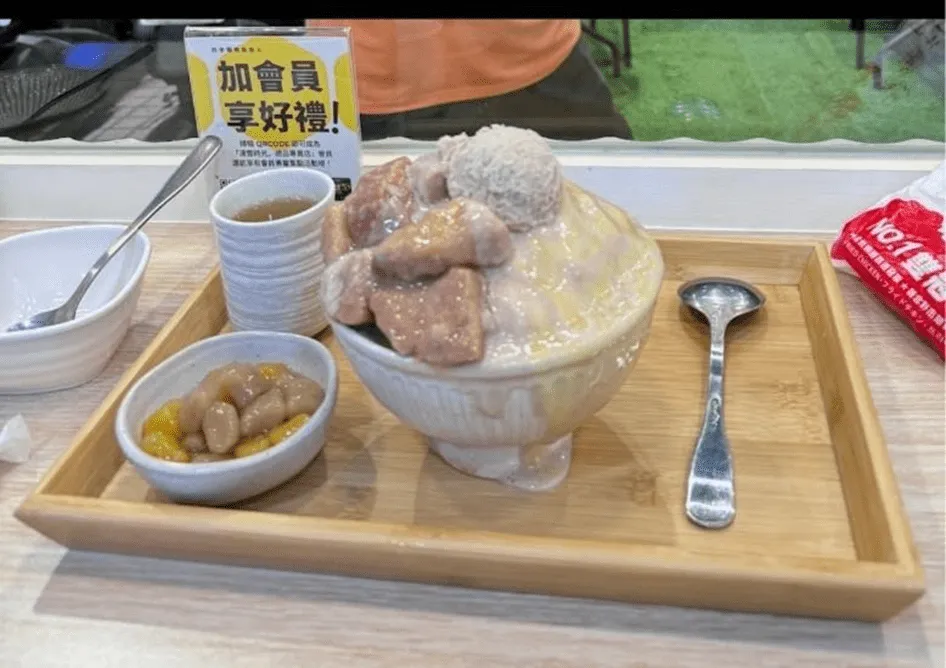 我點了他們的招牌產品之一——蜜香烏龍雪花冰。一端上來,清香的烏龍茶味撲鼻而來,冰涼的口感搭配濃郁的茶香,真的是炎炎夏日中的一大享受。朋友們則選了芋見雪藏雪花和芒果牛奶雪花,色彩繽紛的冰品拍起照來也是超級上鏡。