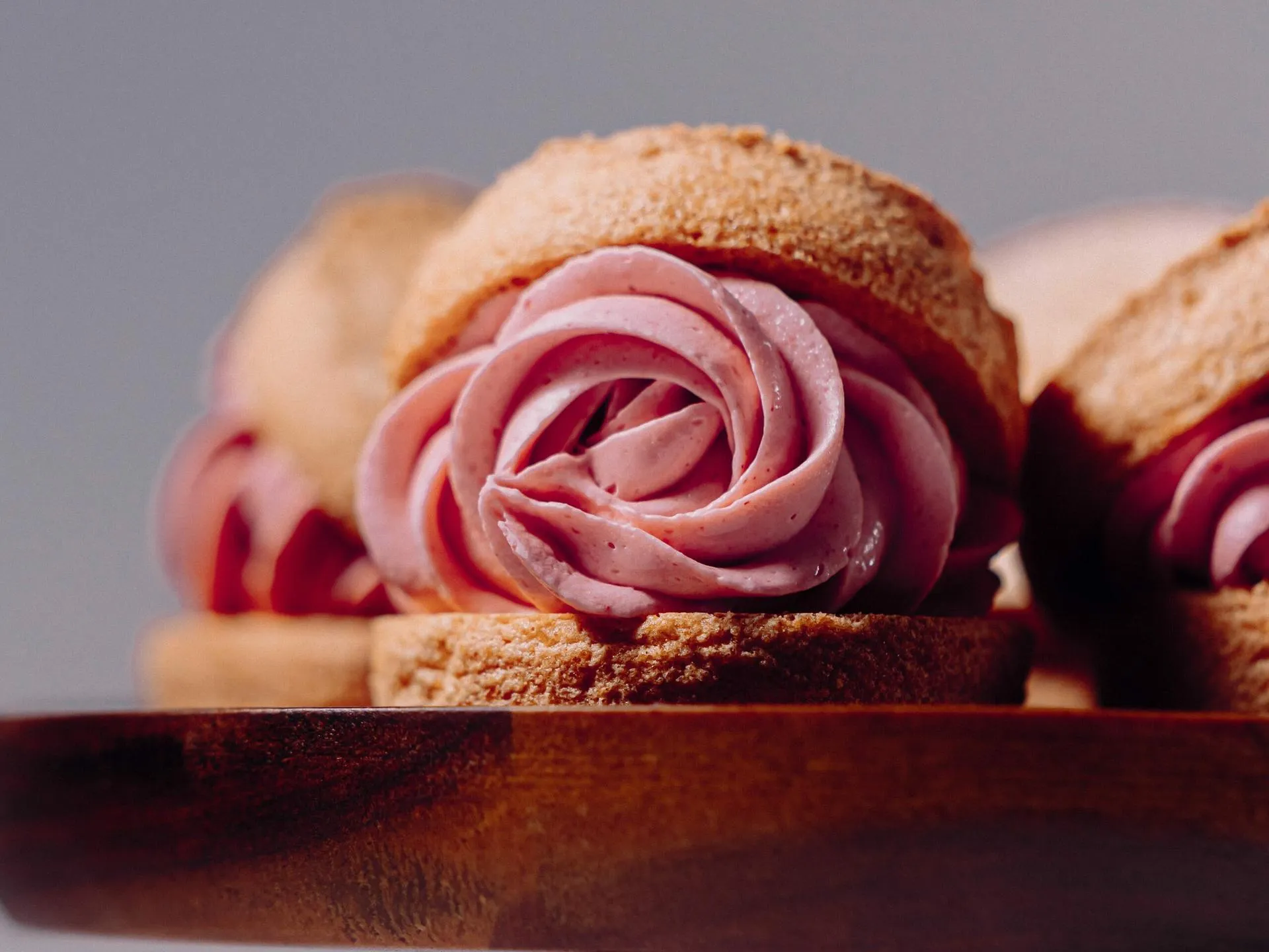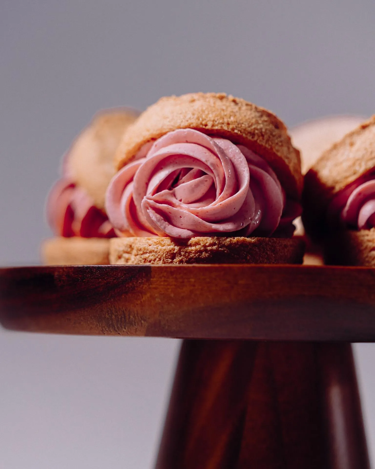 首先,我選擇了達克瓦茲。這款無麩質甜點採用米穀粉製作,讓人倍感安心。我選擇了玫瑰檸檬口味。100%檸檬原汁製成的奶油霜,搭配獨特果香的蘋果丁,再使用新鮮現磨的檸檬皮、玫瑰花瓣點綴,酸甜交織的滋味,讓每一口都充滿了驚喜。