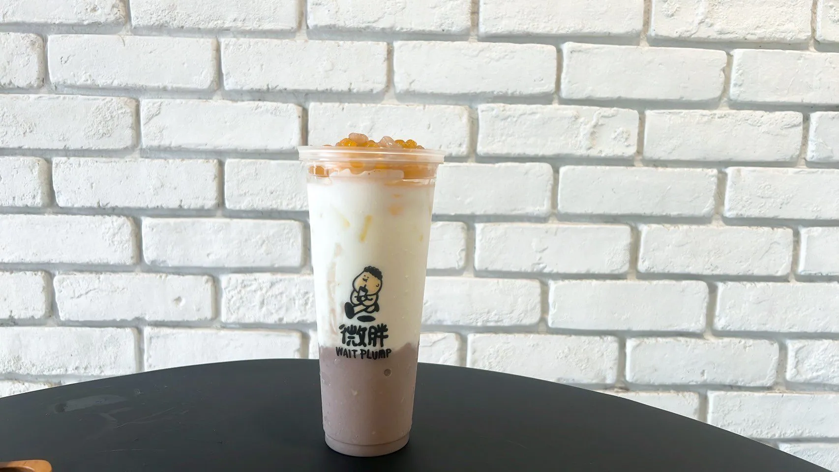 再來,「微胖芋芋鮮奶」也深得我心。這杯茶飲將大甲芋頭的細膩與小農鮮乳的濃郁完美結合,搭配上Q彈的雙色芋圓,每一口都是芋頭的純粹香甜。這款飲品不僅讓人回味無窮,更是芋頭愛好者的夢幻之選。