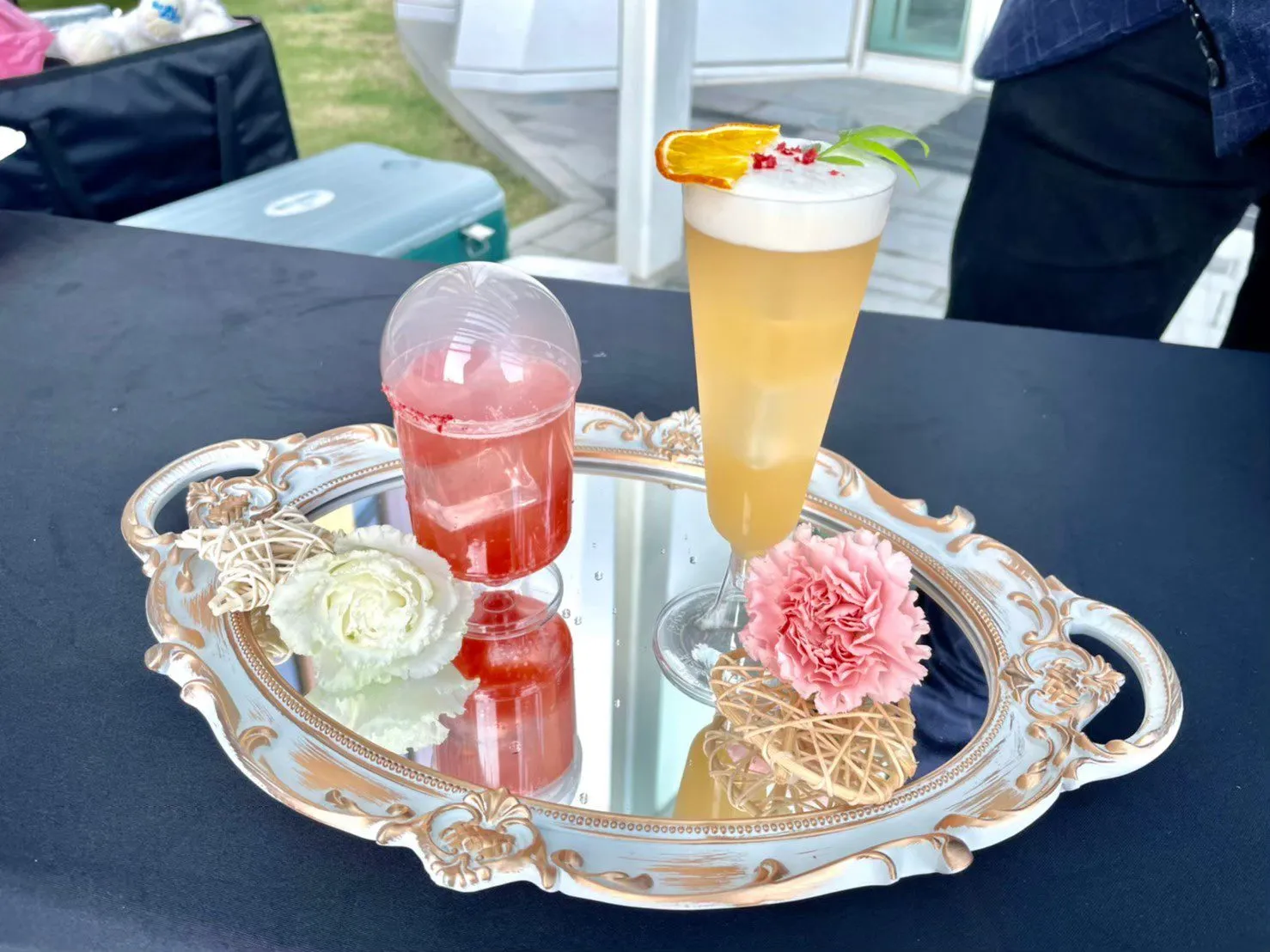 「Wedding.Bar.Party專屬妳的婚禮調酒師」的調酒師擁有豐富的婚禮服務經驗,他們能根據新人的故事、婚禮的主題和現場的氛圍,設計出專屬的婚禮調酒。這些調酒在味道上獨具特色,還能通過精美的裝飾和呈現方式,為婚禮增添更多的浪漫和歡樂。