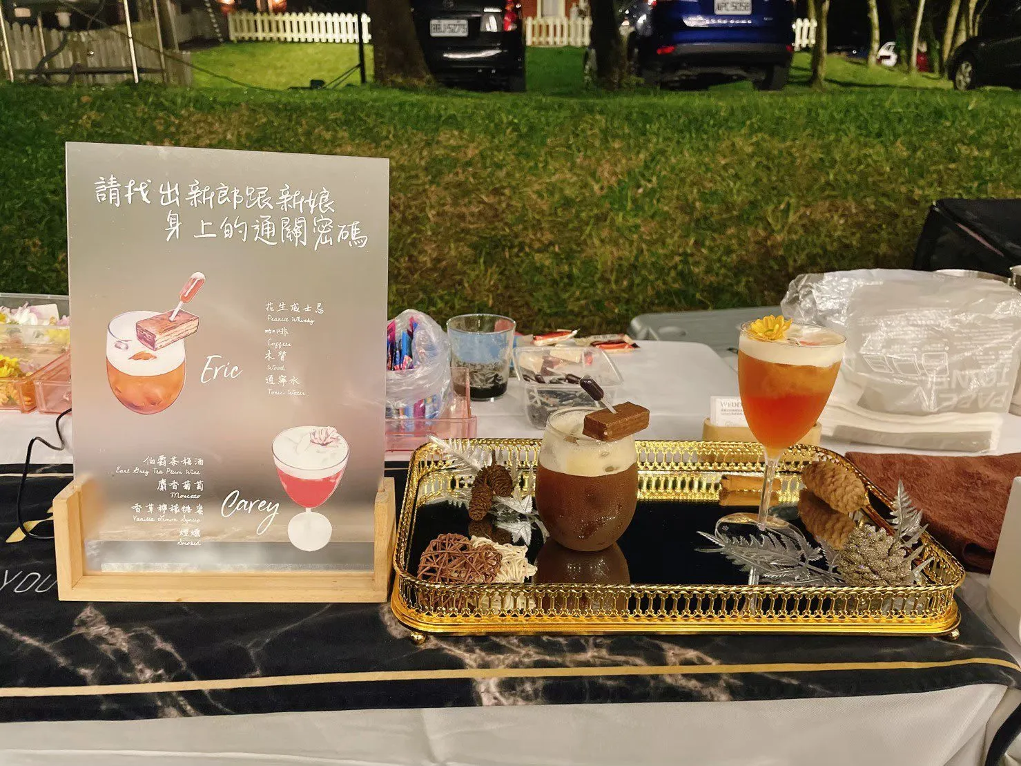 「Wedding.Bar.Party專屬妳的婚禮調酒師」的調酒師們擁有豐富的戶外活動經驗,他們能夠根據活動的類型和環境特點,設計出專屬的調酒。無論是在山間露營、海邊野餐還是森林徒步,每一款調酒都經過精心調製,味道絕佳,還能與自然環境完美融合,為您的戶外活動增添一份獨特的風味。