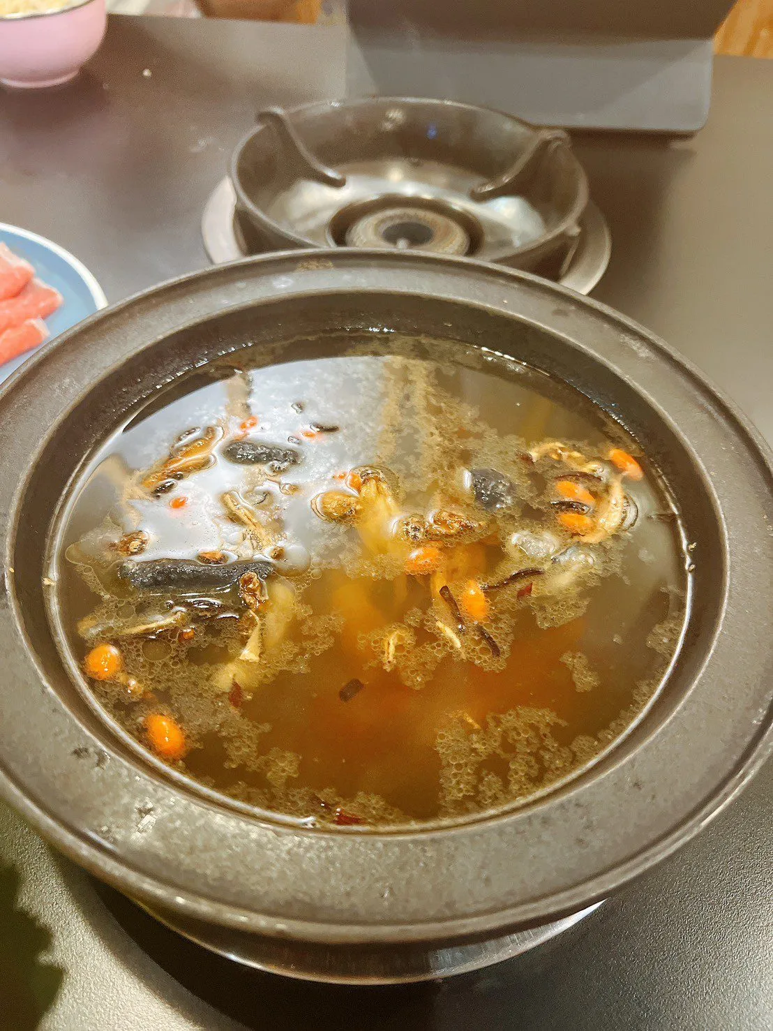 店內環境雅緻,氛圍溫馨。我們點了剝皮辣椒鍋和燒酒鍋,師傅幫我們將湯底現點現炒,香味十足。這裡的湯底皆是用大量蘋果和蔬菜熬製,使味道清甜爽口,不論是剝皮辣椒鍋還是燒酒鍋,味道都非常濃郁,卻一點也不膩口。
